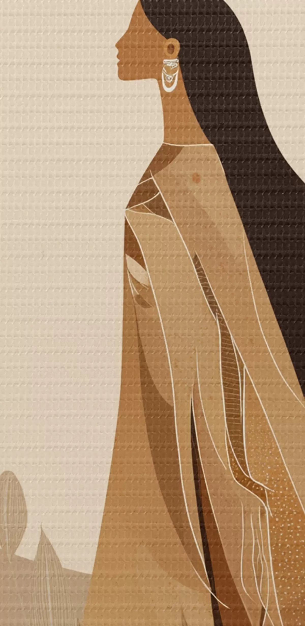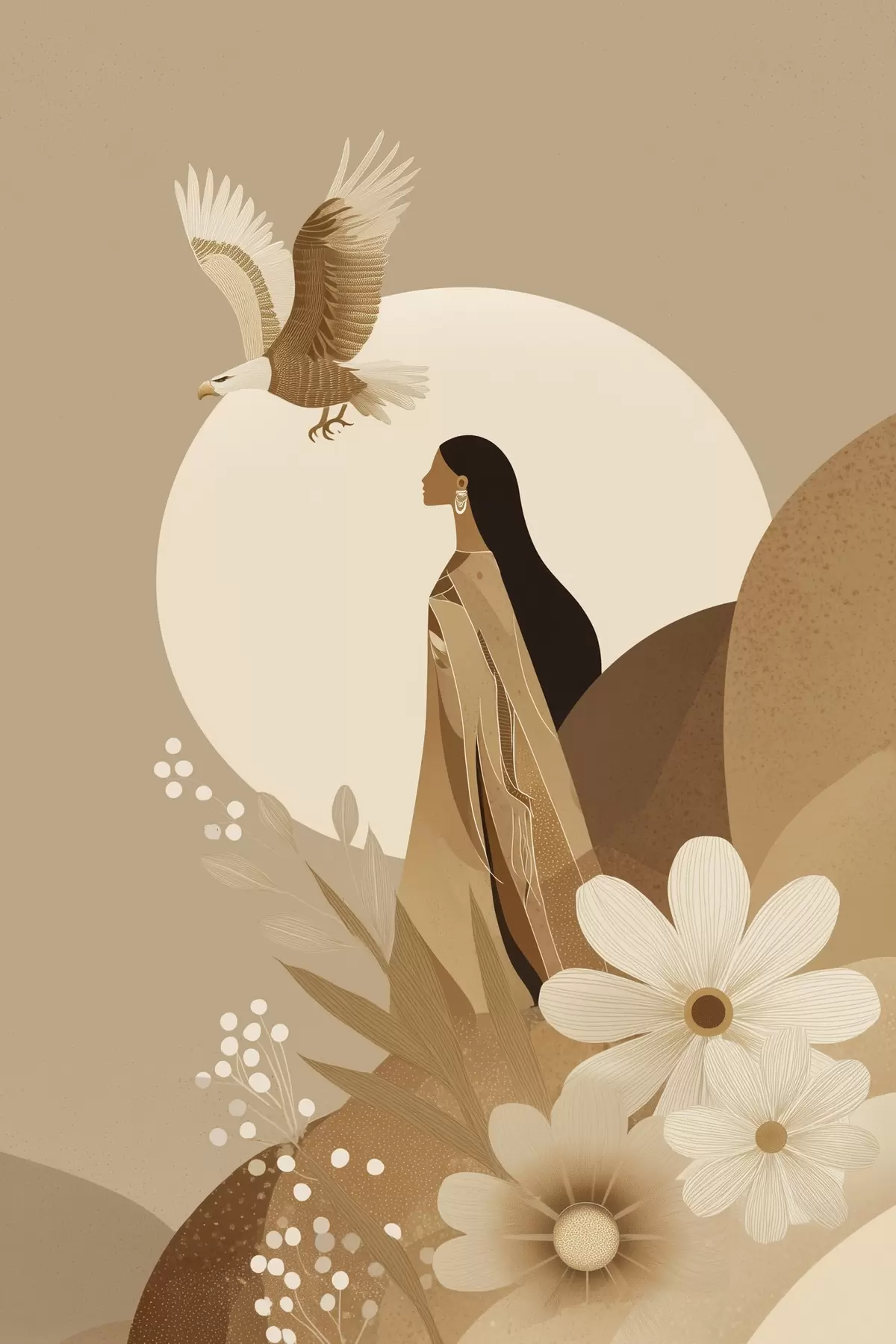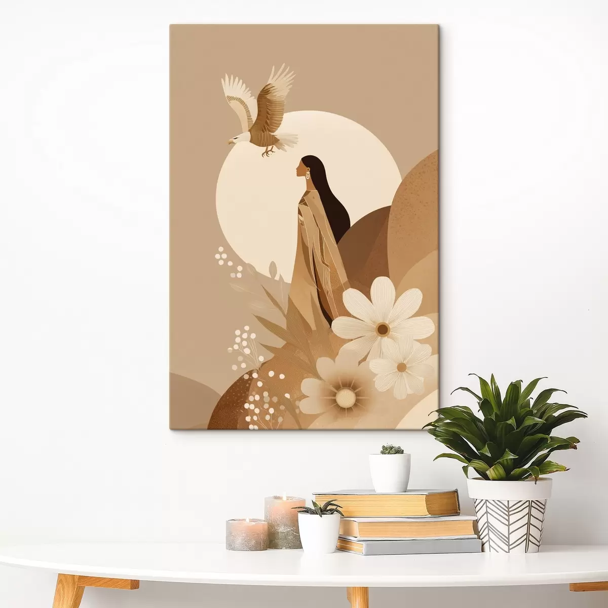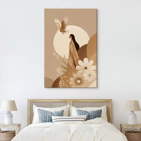 Picture Abstraction with woman and eagle in the sky, beige colors Nr s44978