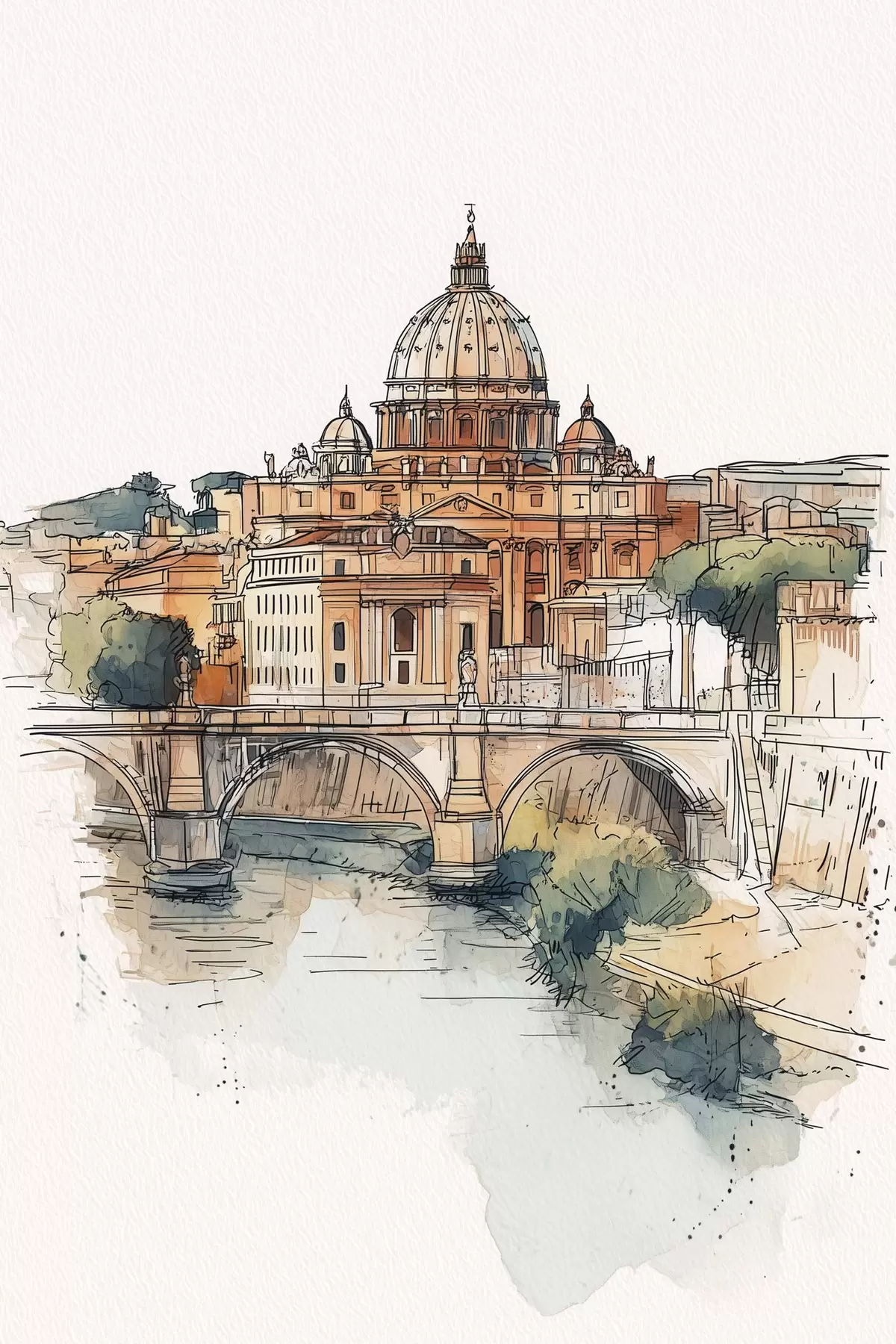Picture Watercolor Rome city, sketch drawing, architecture Nr s44983