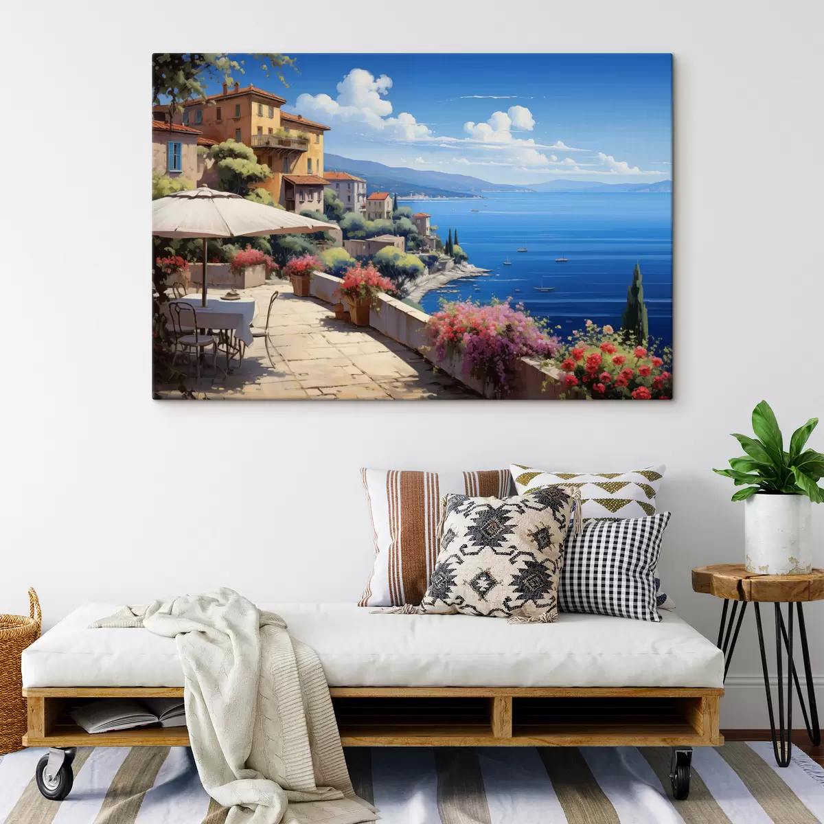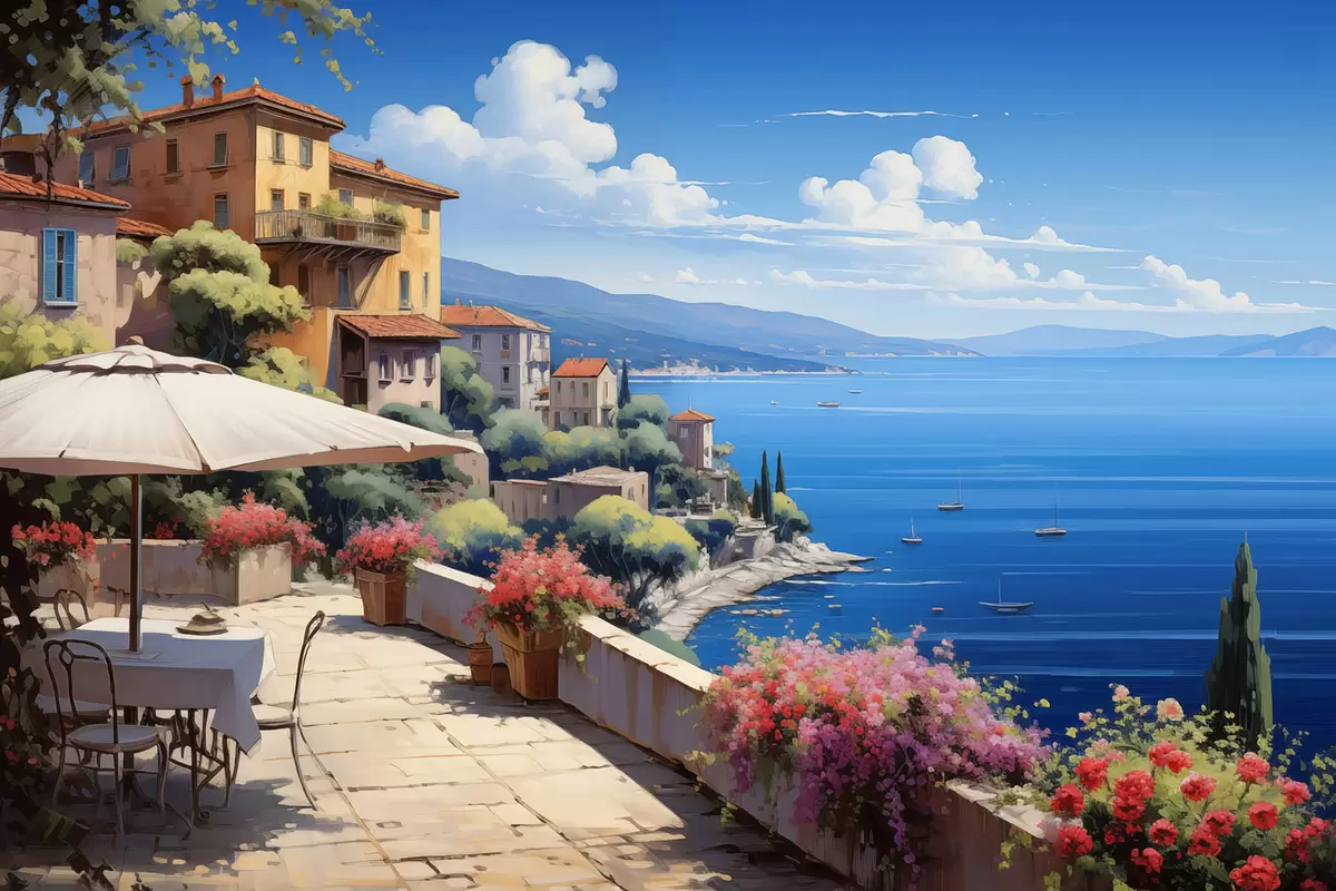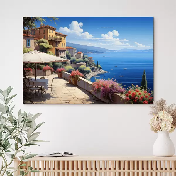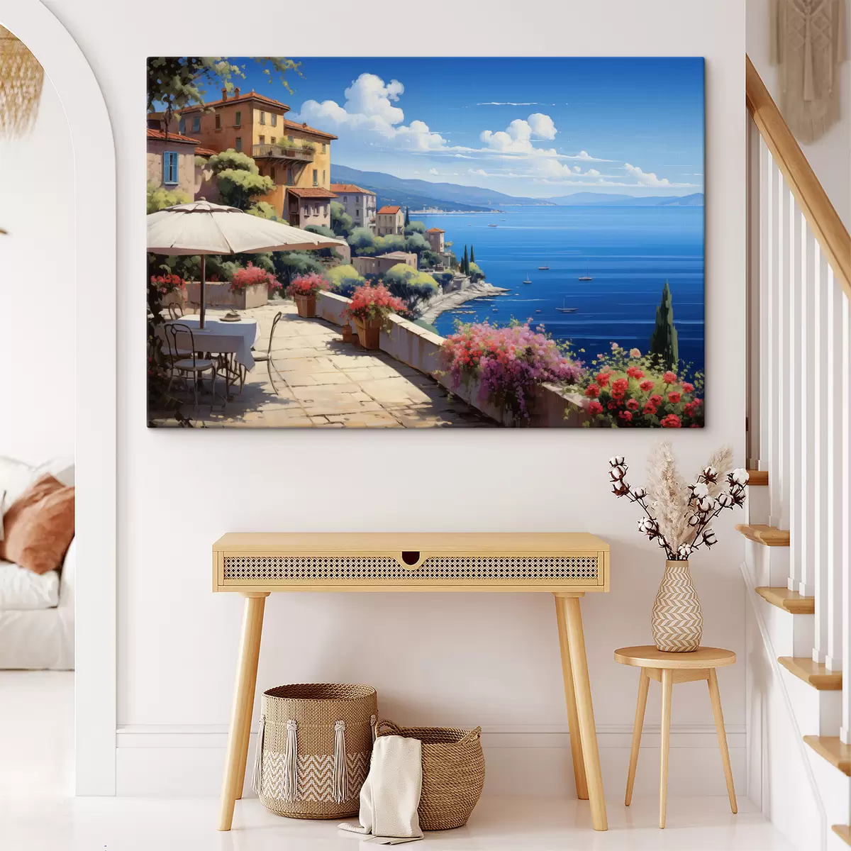 Picture Mediterranean landscape with blooming terrace in artistic style Nr s45053