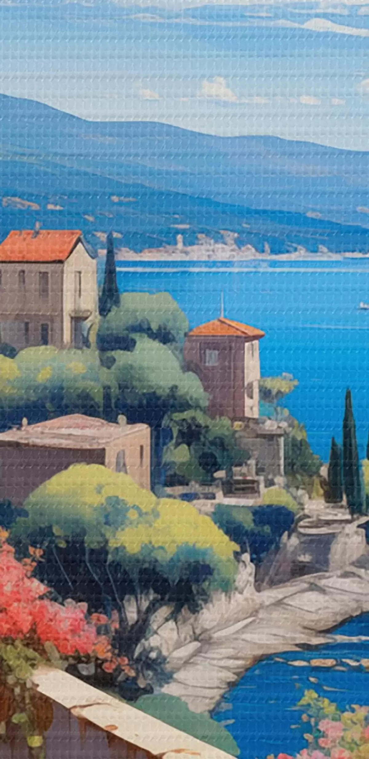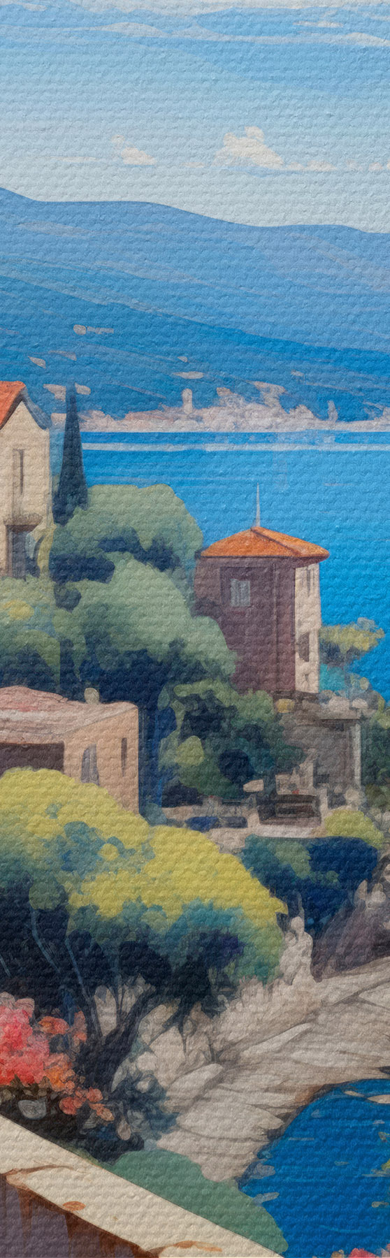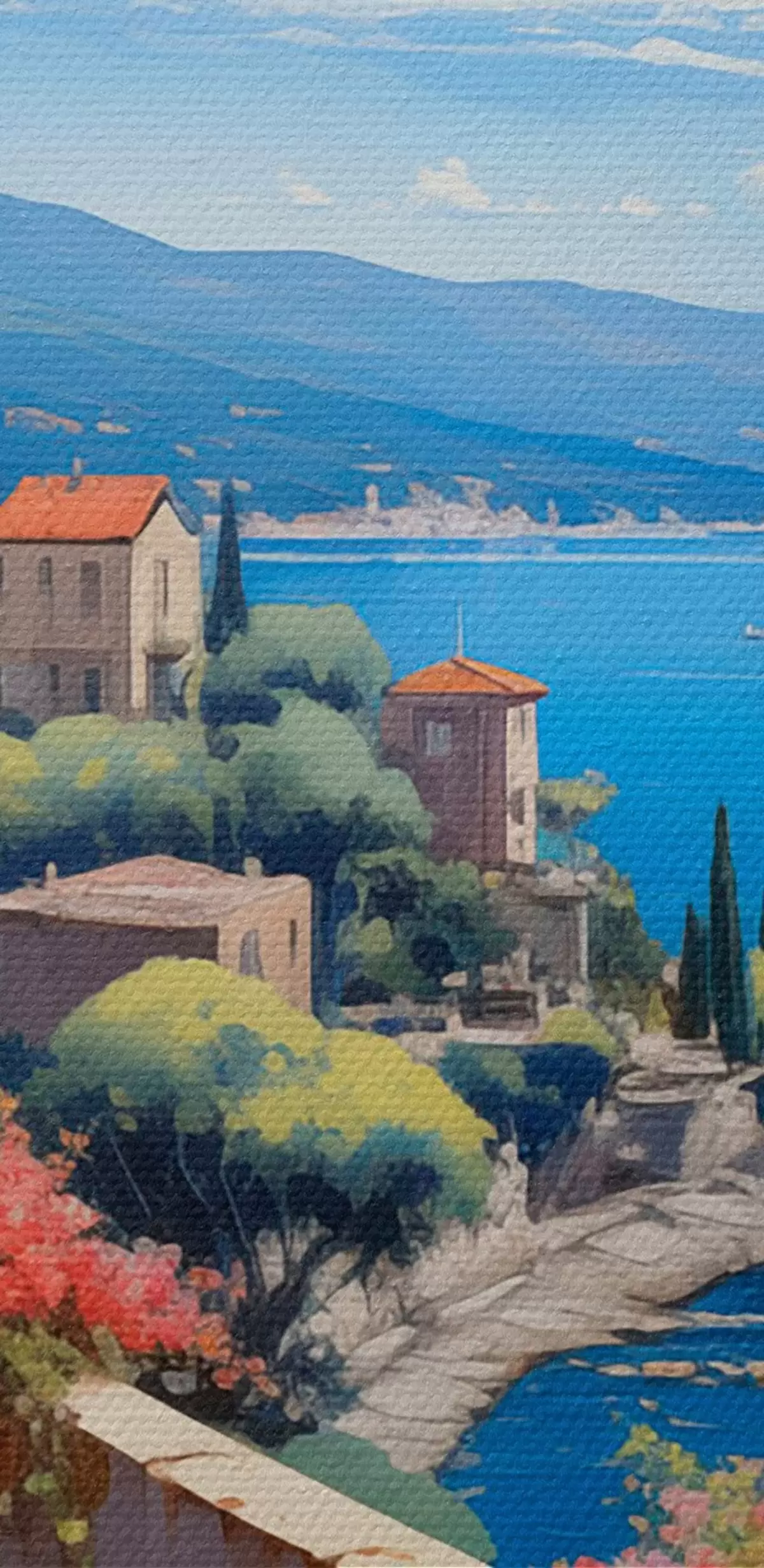 Picture Mediterranean landscape with blooming terrace in artistic style Nr s45053