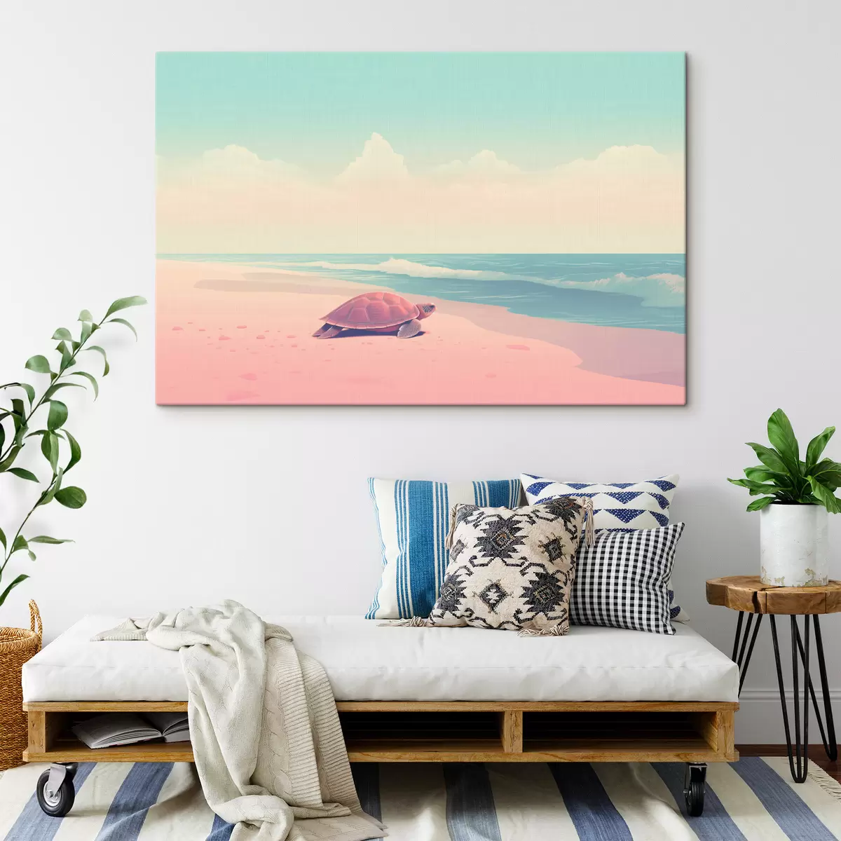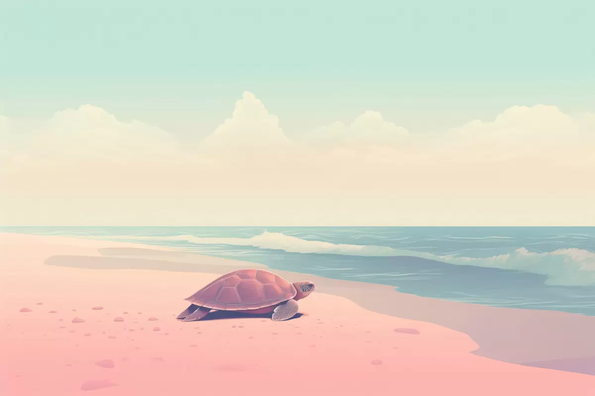 Picture Sea turtle on a pink beach: minimalist landscape Nr s45059
