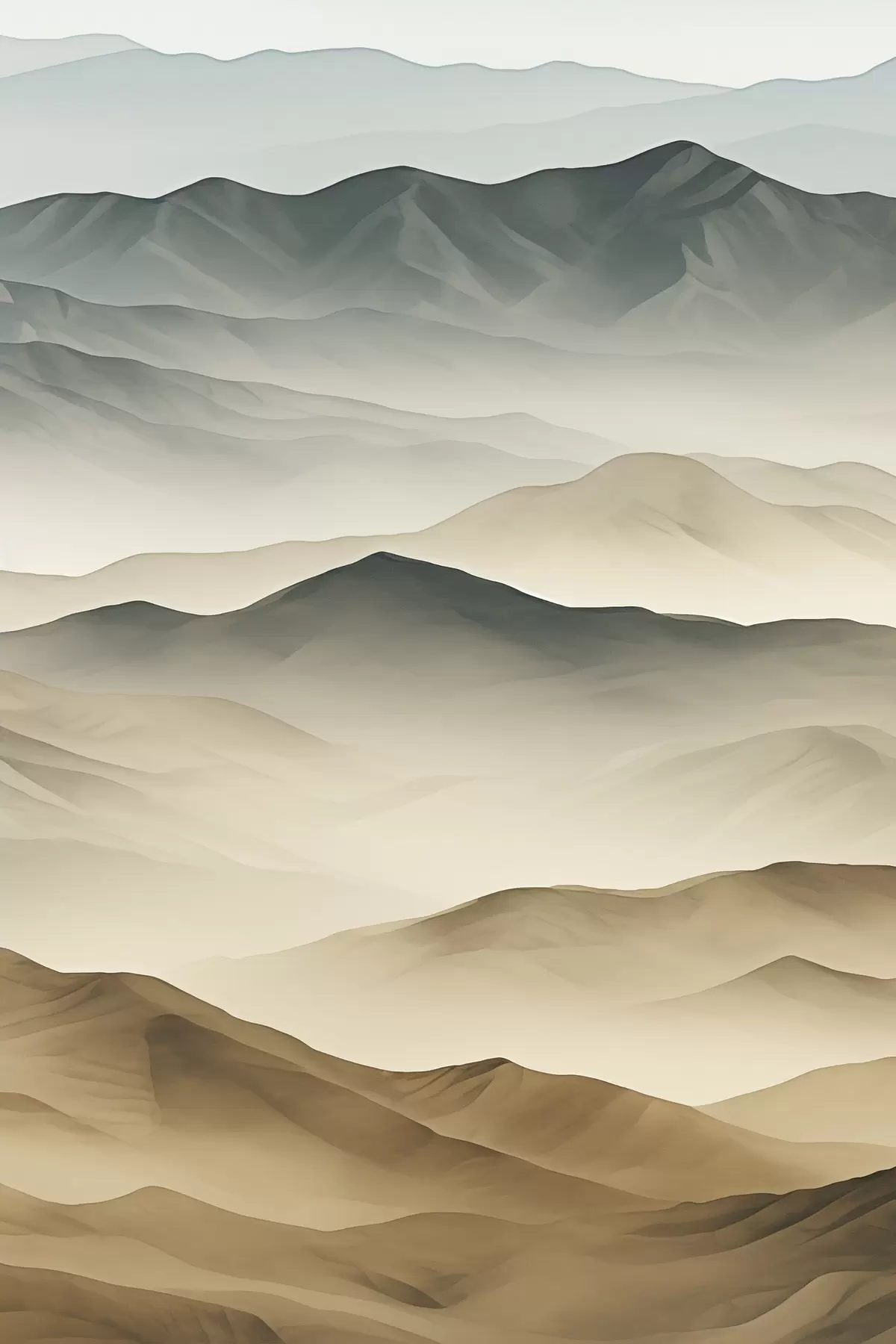 Picture mountains, layers, mist, soft gradient, natural, beige, abstract, landscape Nr s45095