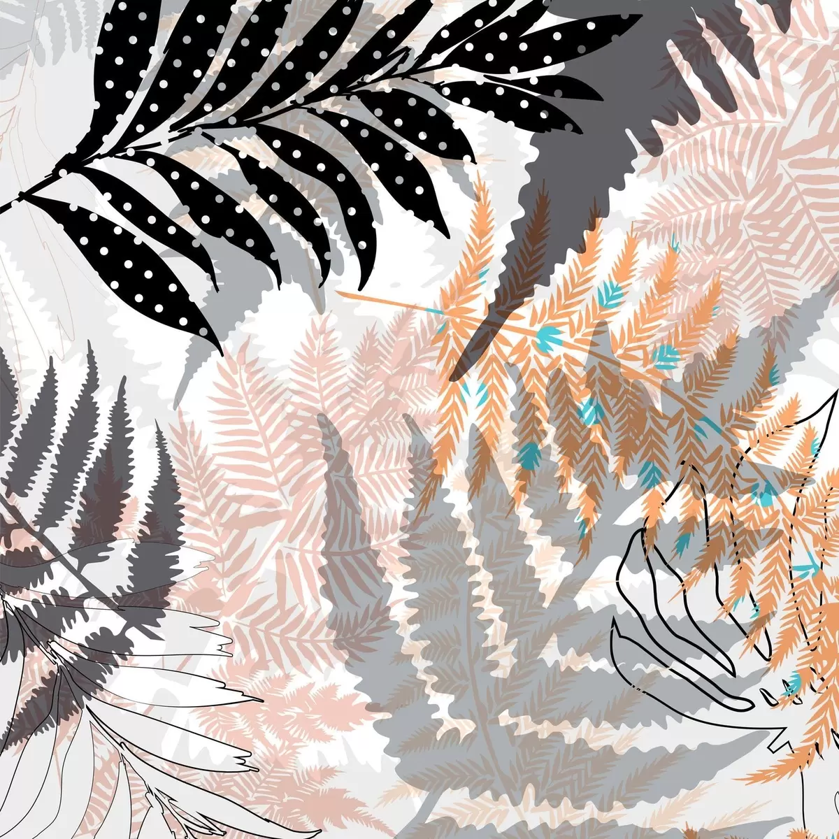 wall murals tropical leaves, graphic, texture, beige and black, silhouette, contemporary, plant s45103