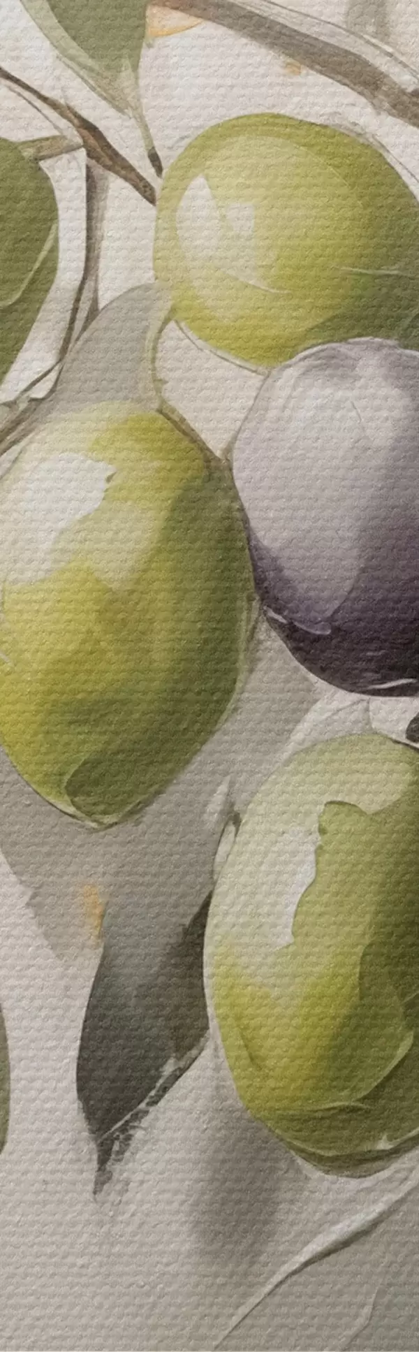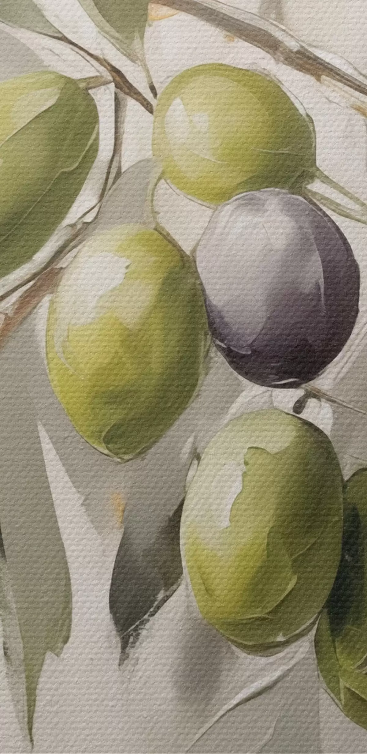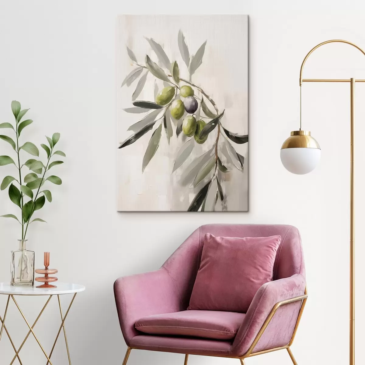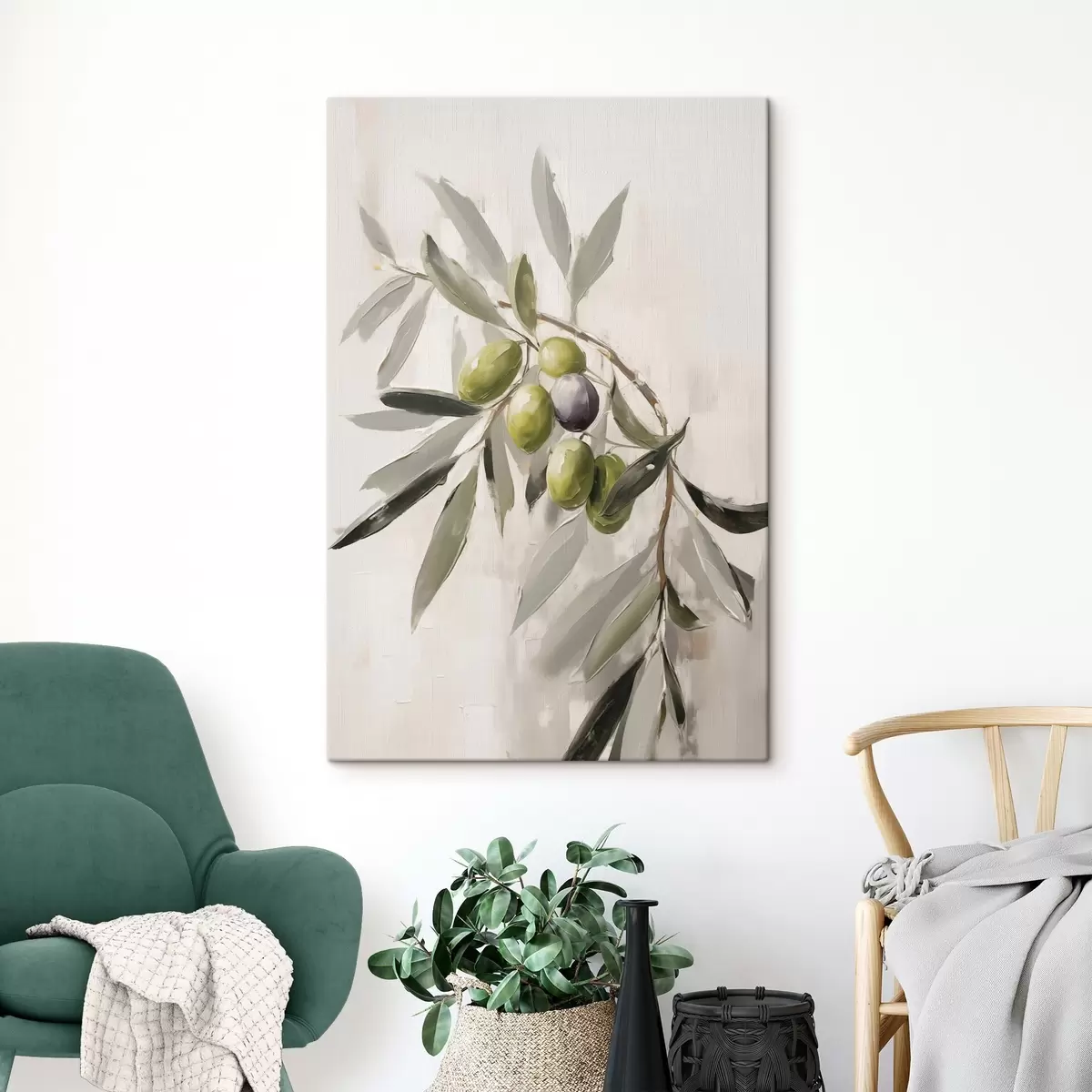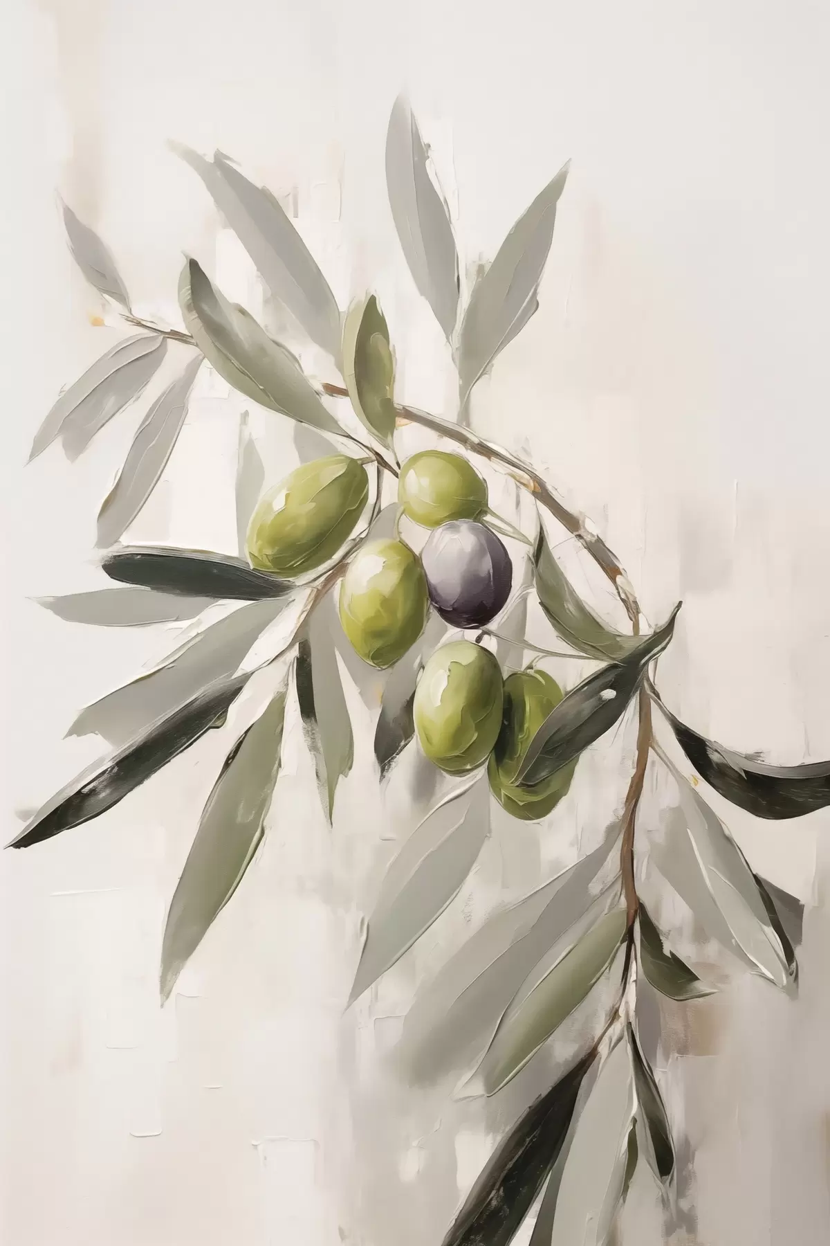 Picture green olives, branch detail, light backdrop, organic, natural palette, rustic Nr s45110