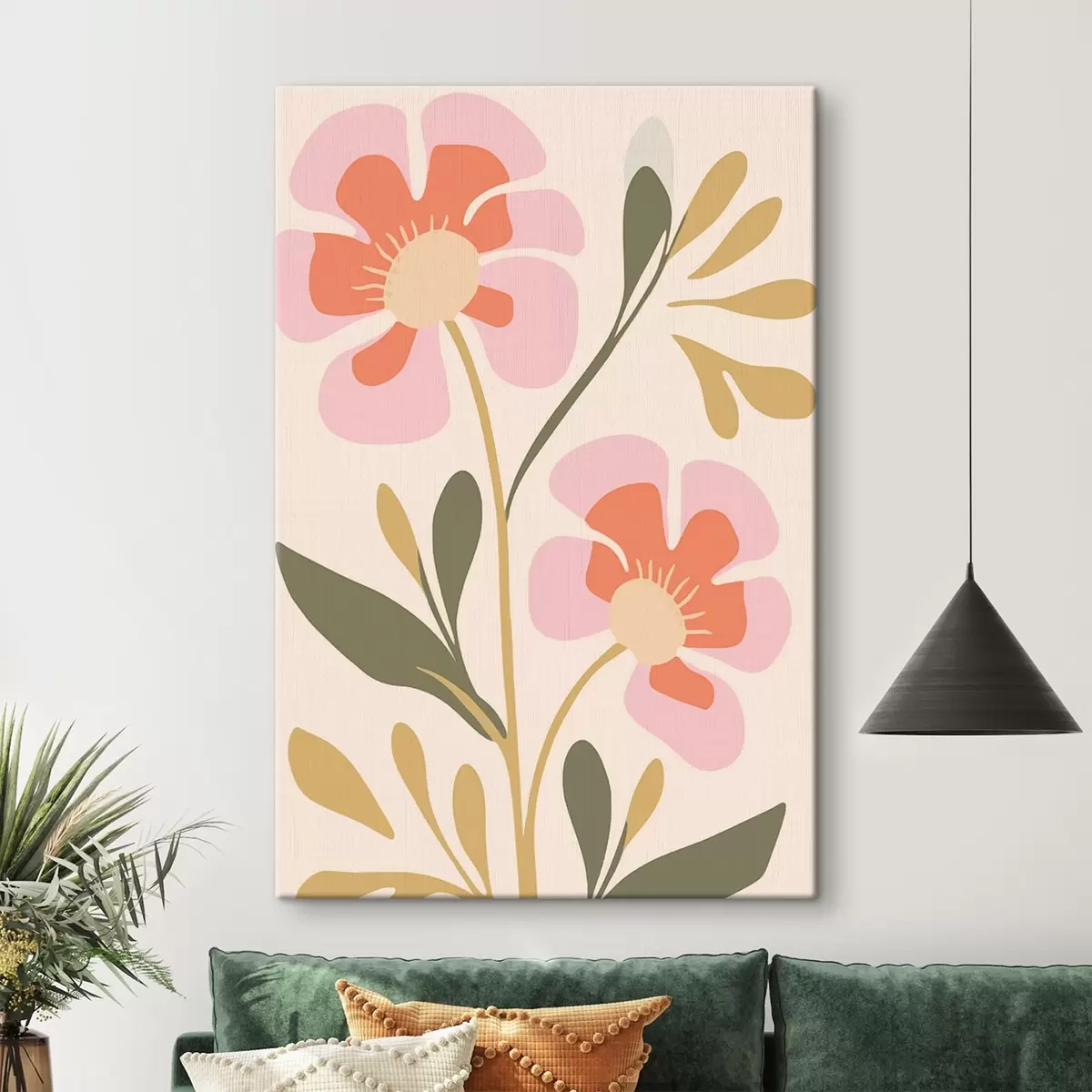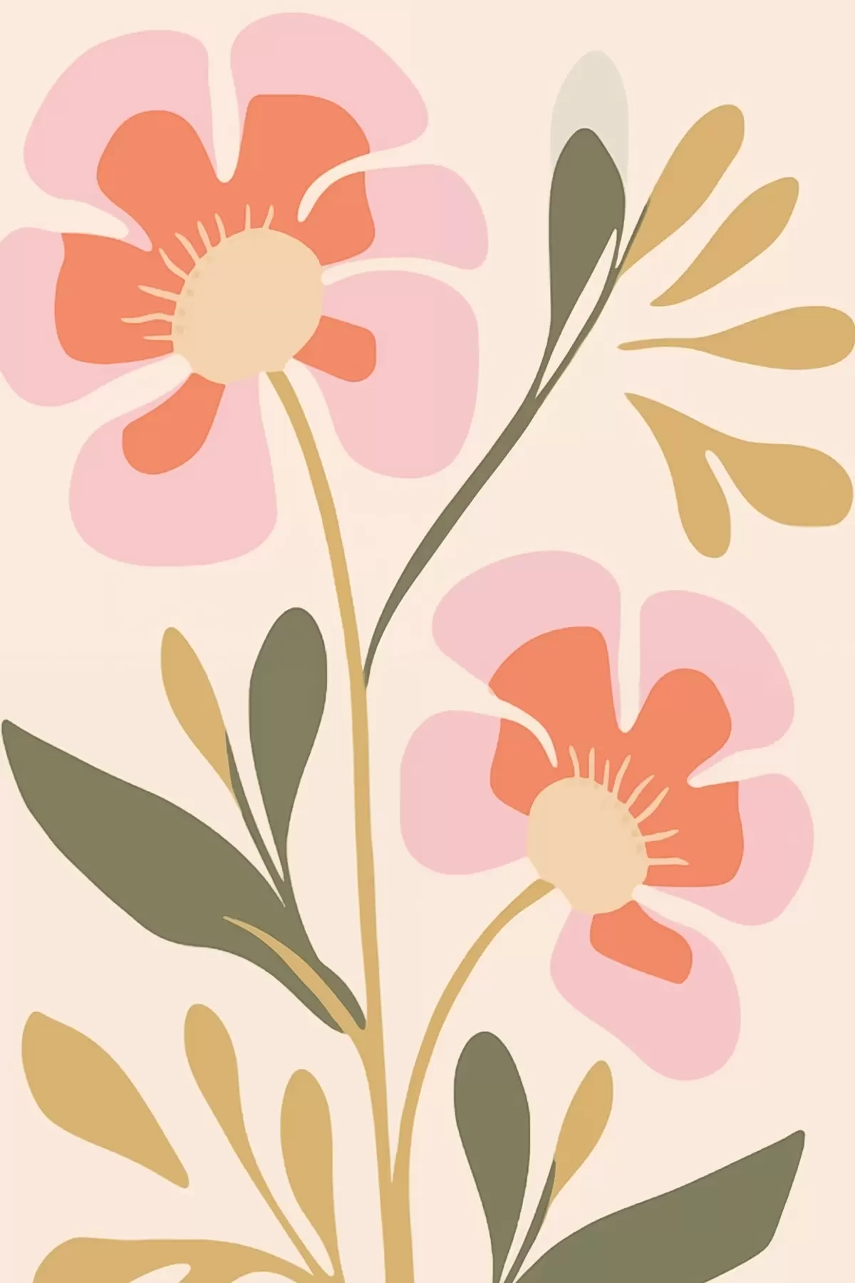 Picture Stylized pink and orange flowers with green leaves Nr s45140