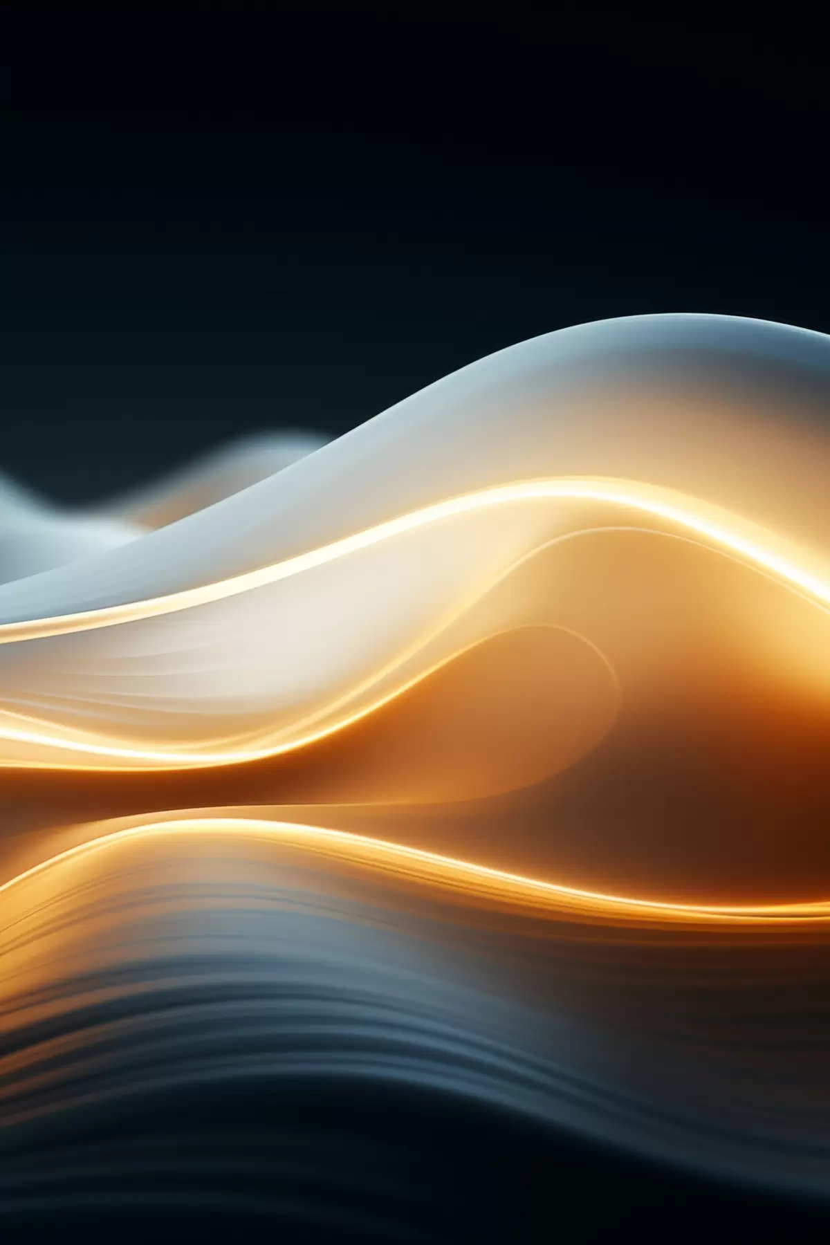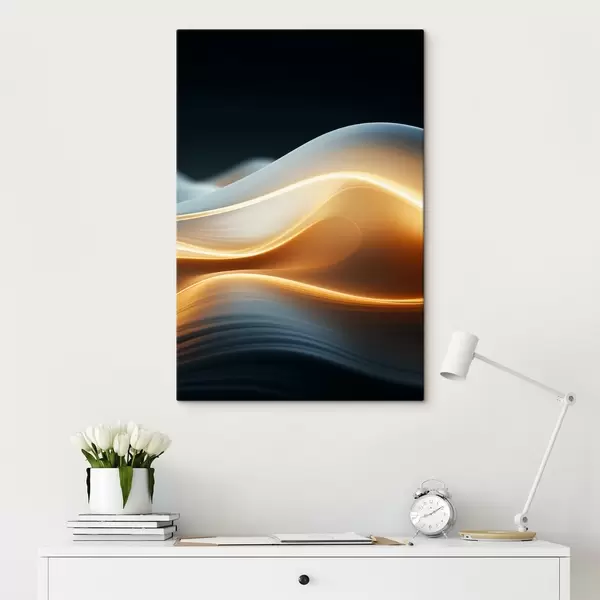 Picture Abstract flowing shapes with orange lines, smooth curves and lines, dynamic composition, dark background Nr s45183