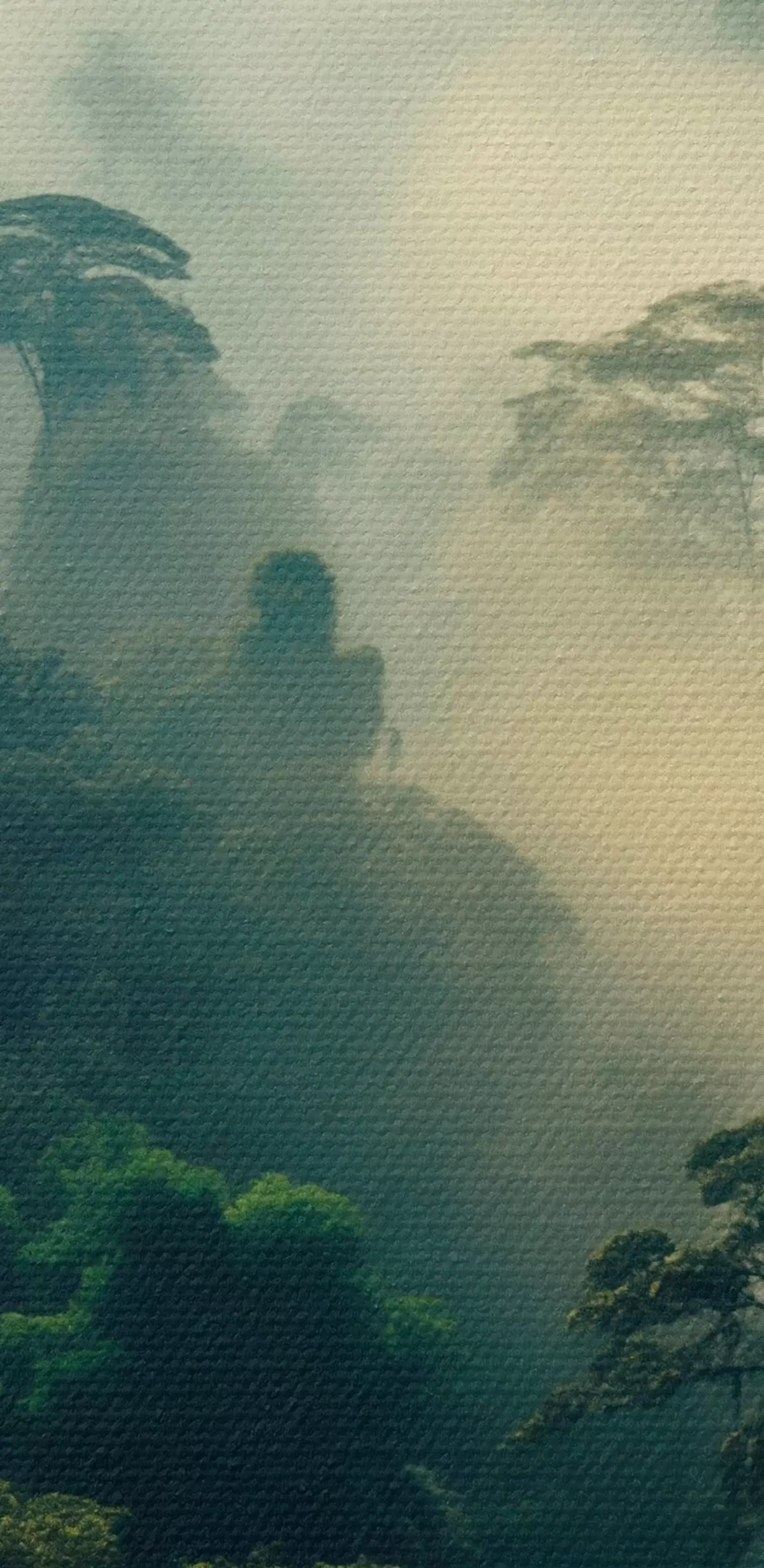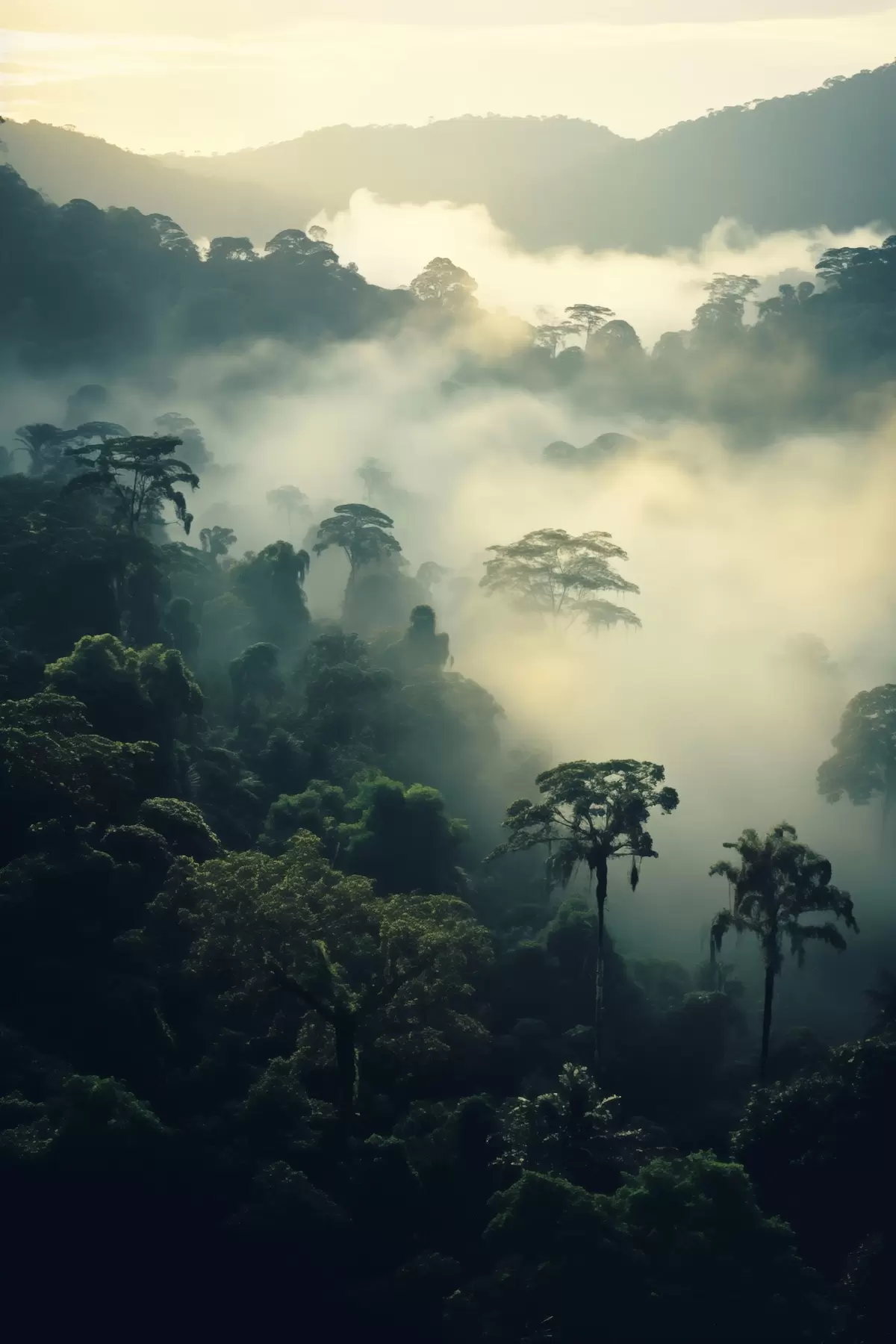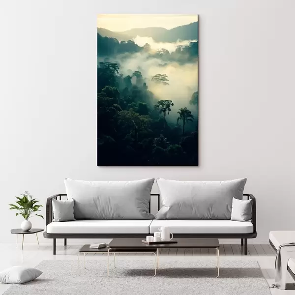 Picture Tropical rainforest with lush green trees and a thick layer of mist , creating atmospheric environment Nr s45190