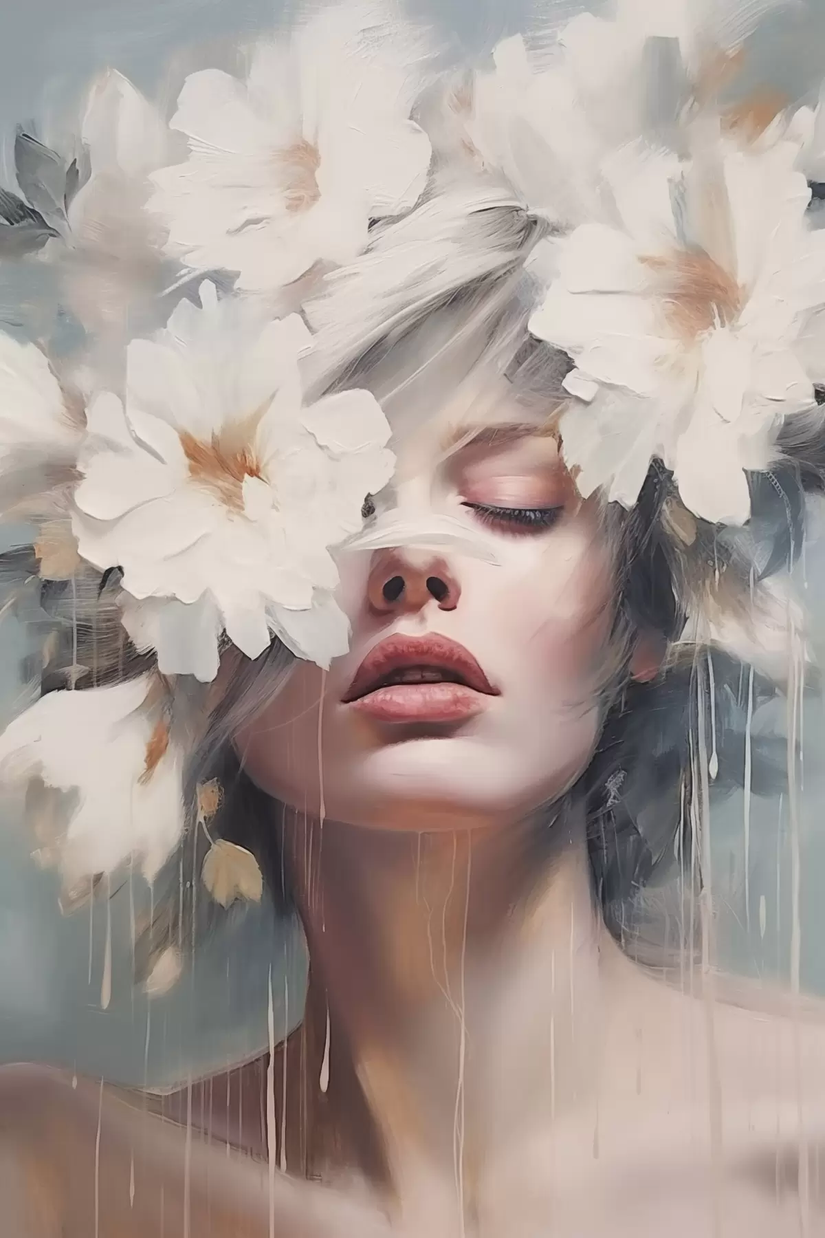 Picture Female portrait with white flowers Nr s45219
