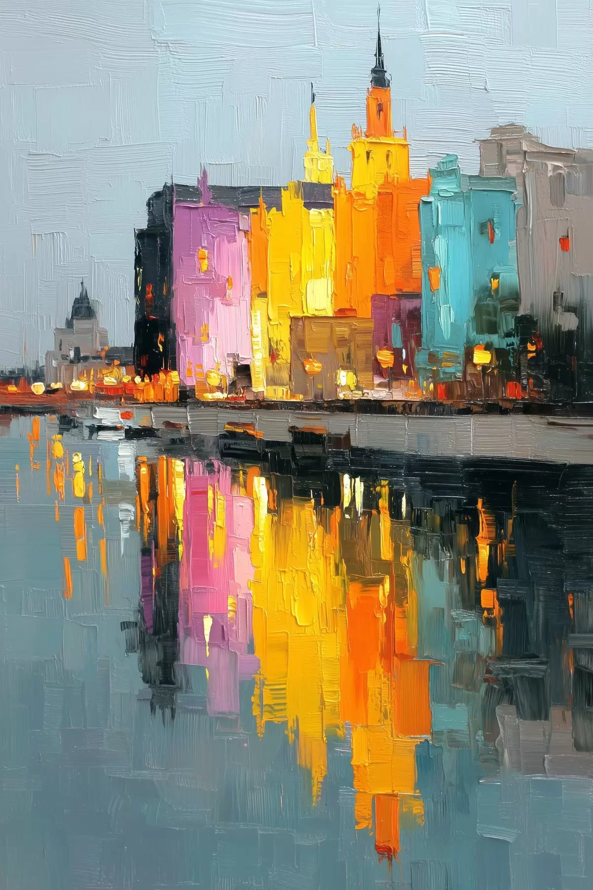 Picture City lights: vibrant landscape in impasto style Nr s45242