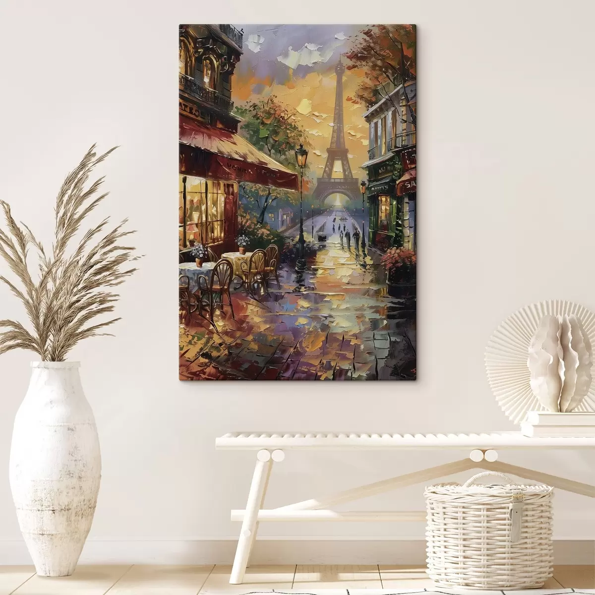 Varnishing creates an additional protective layer on the canvas. The picture will be more resistant to minor damages, and to refresh the varnished picture, you can wipe it with a soft, slightly damp cloth.