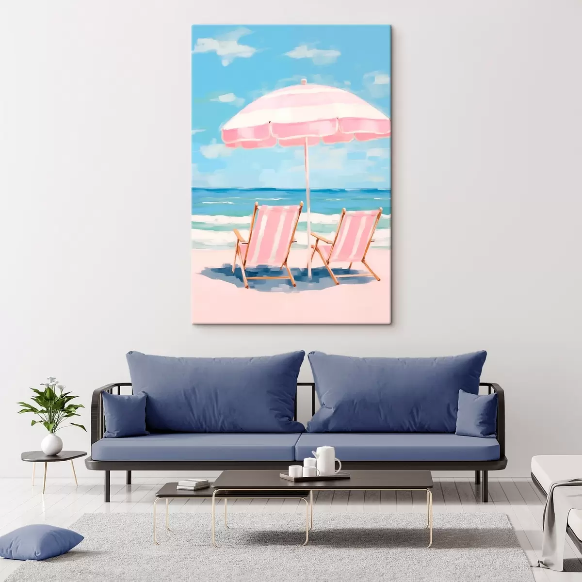 Picture Beach umbrella and deck chairs on the coast Nr s45442