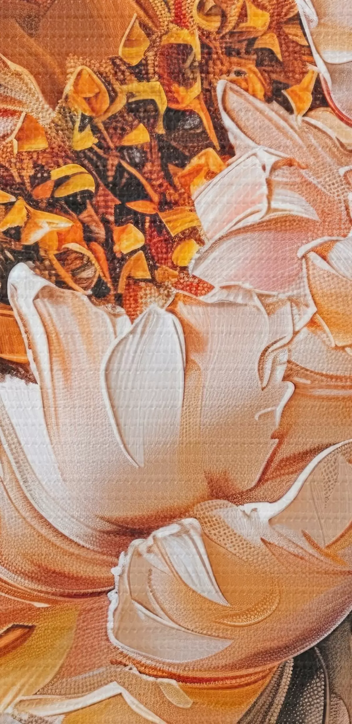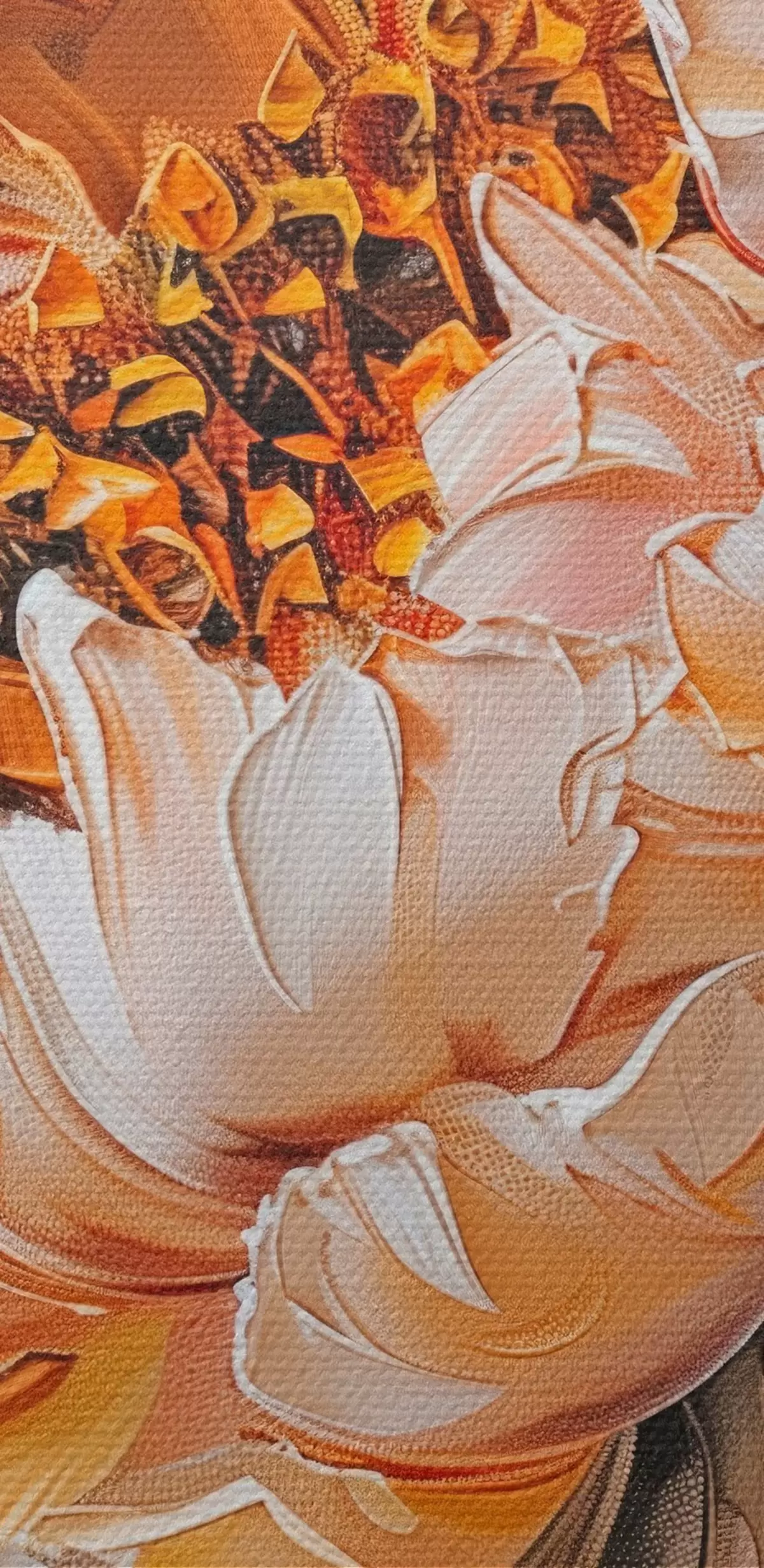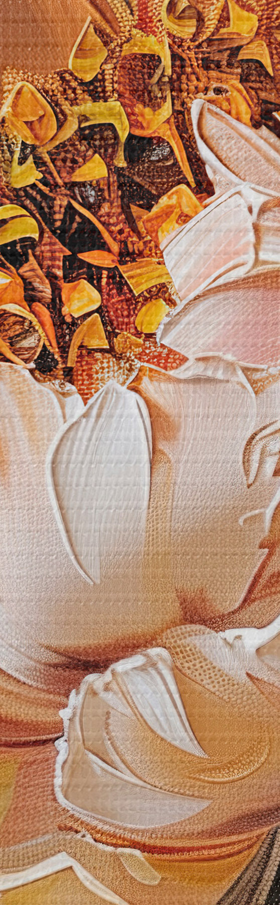 Three types of material are available for ordering: Economic Canvas - a dense and durable material for digital printing, identical to painter's canvas, waterproof surface, realistic reproduction of details, medium-grain material. Premium Canvas - the texture resembles a painter's canvas (interwoven small threads). Soft, detailed reproduction of the image on a matte surface. Eco-Premium - high quality 100% cotton fabric. Thanks to natural cotton fibers, the material is durable and wear-resistant. Excellent color reproduction and detail.
