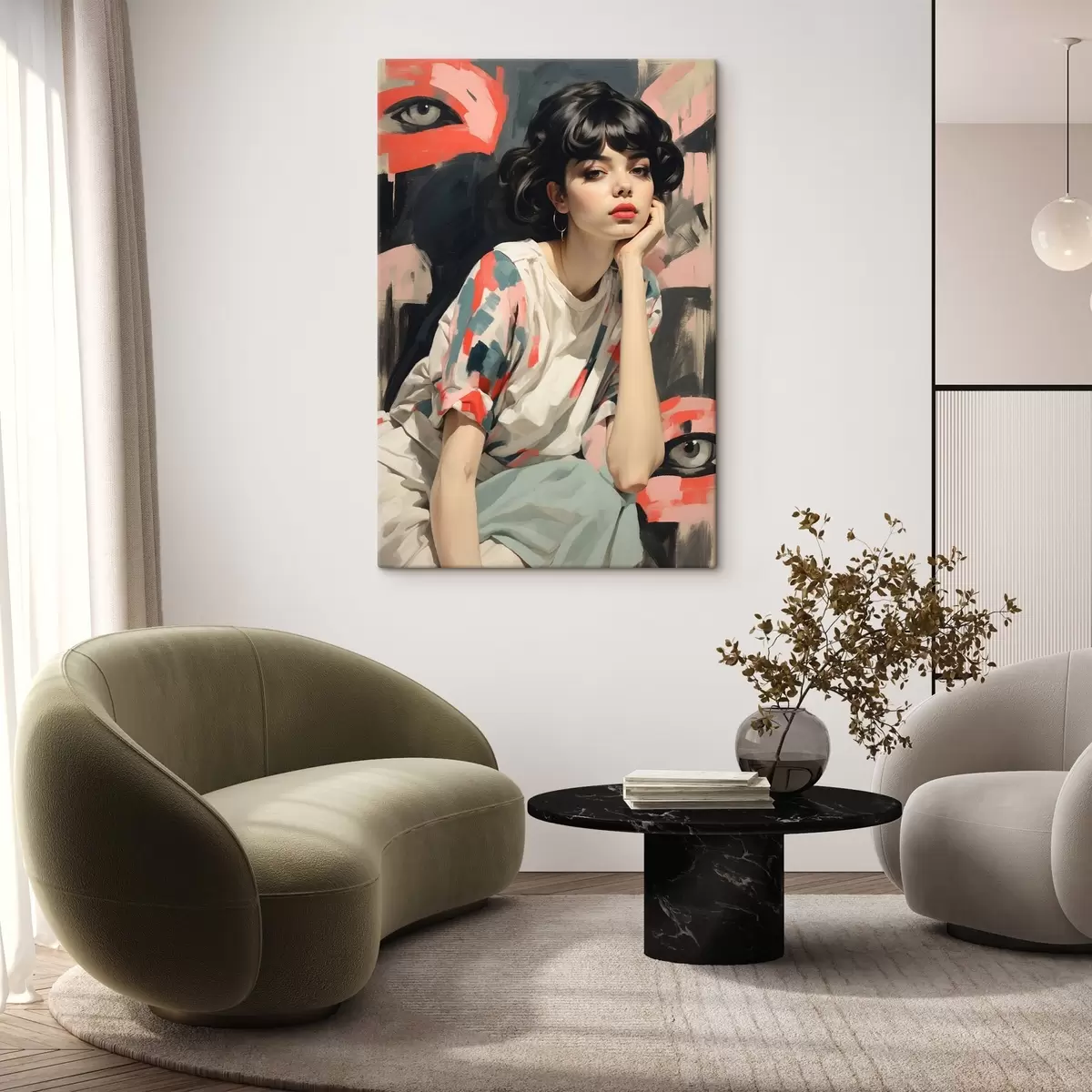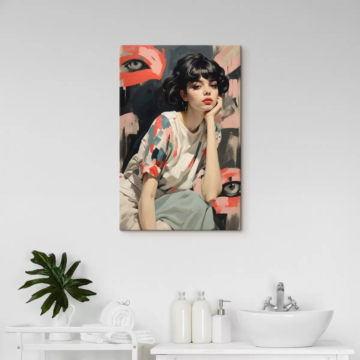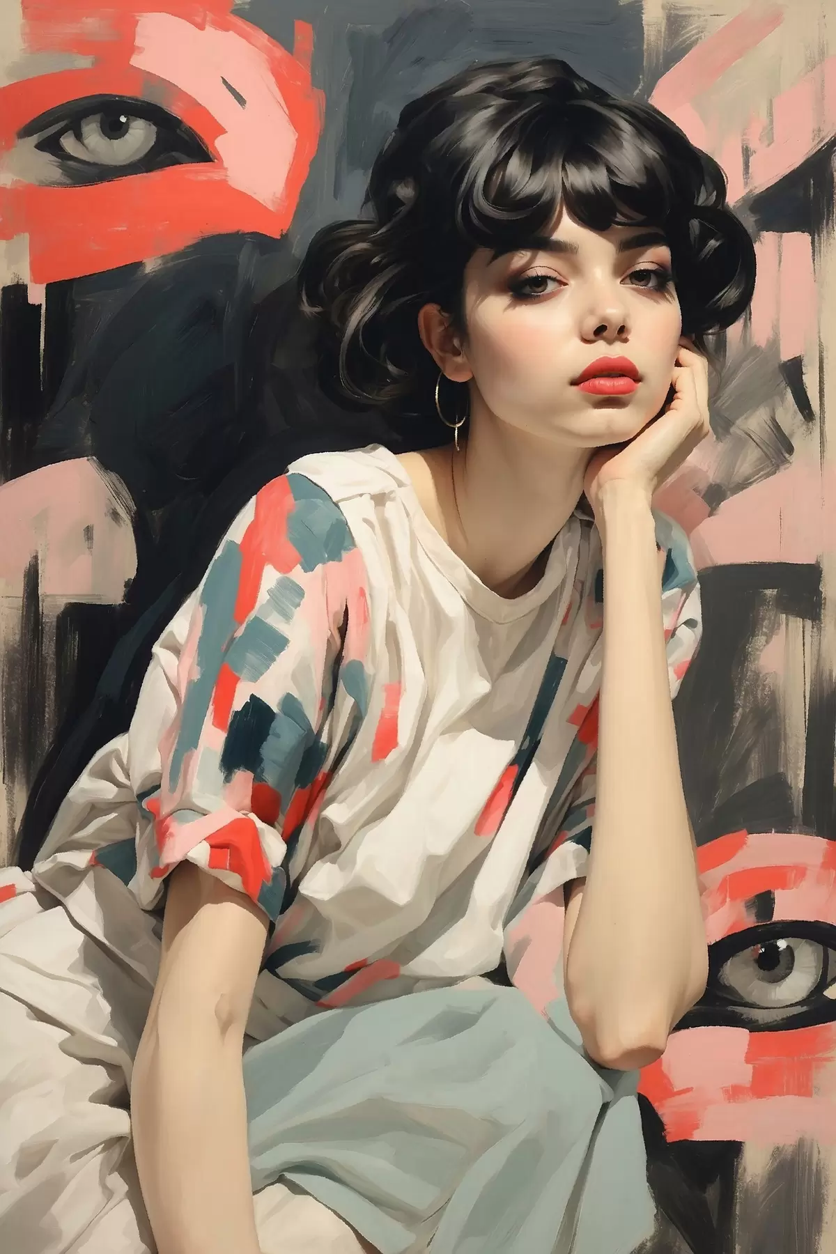 Picture Portrait of a girl against a background with eyes and abstract strokes Nr s45623