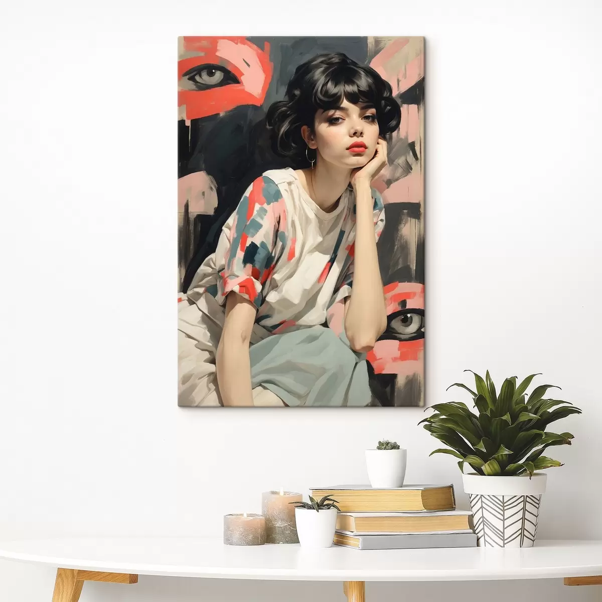 wall murals Portrait of a girl against a background with eyes and abstract strokes s45623