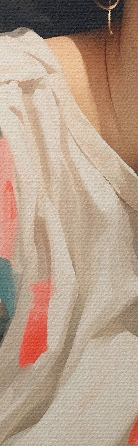 To stretch the canvas on stretcher bars without damaging the image, we use mirrored image.