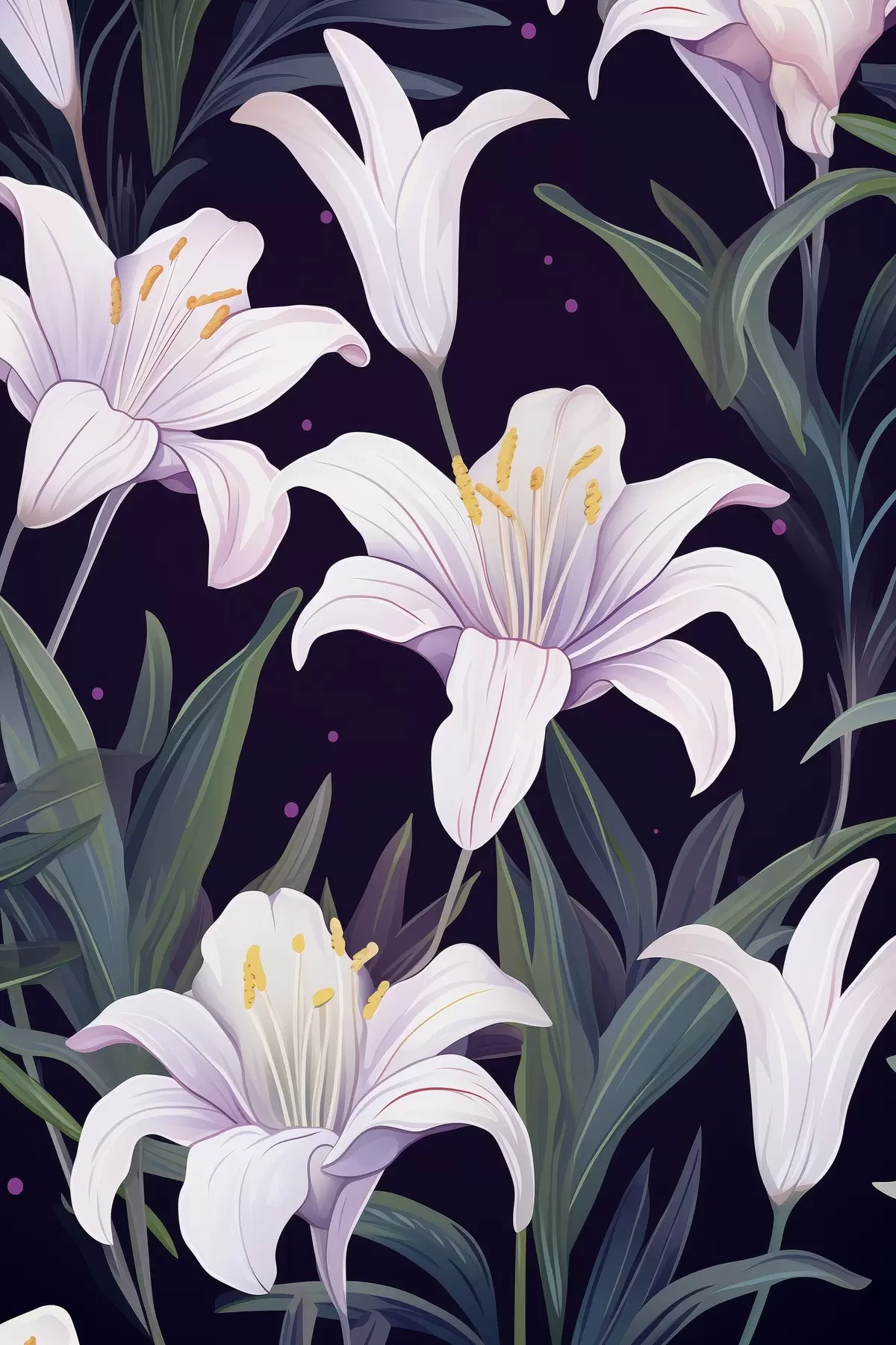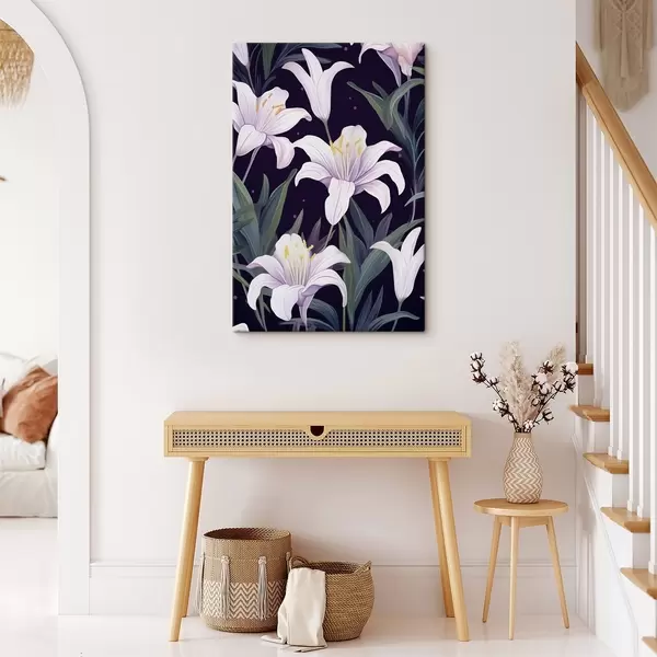 Picture Delicate lilies on a dark background with green leaves Nr s45697