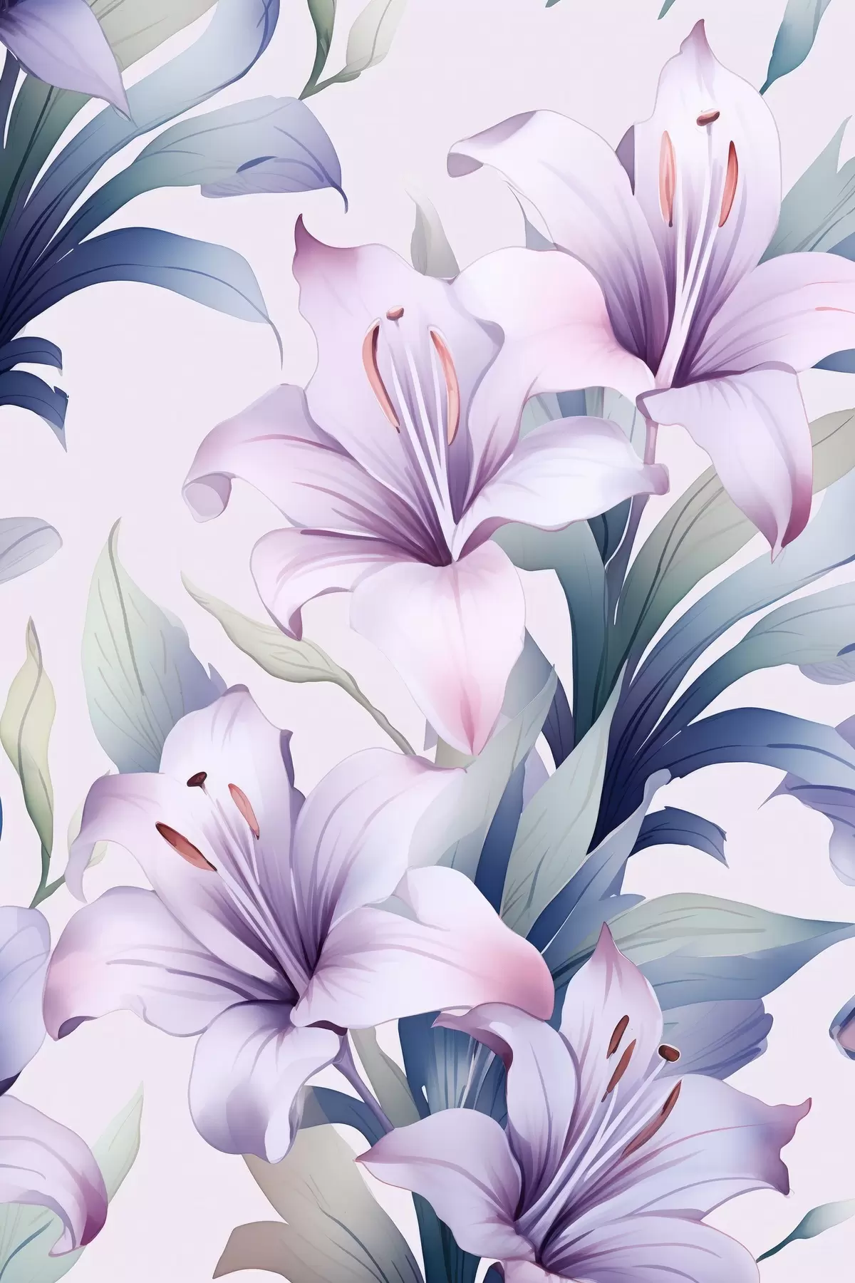 Picture Large pink-purple lilies with green leaves Nr s45698