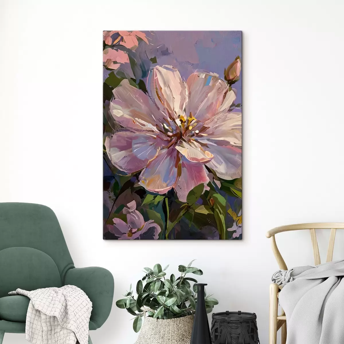 wall murals pink flowers in the style of oil painting s45723