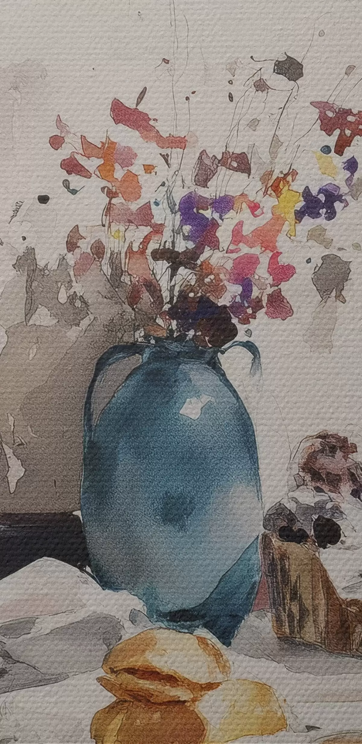 The painting can be hung immediately after receiving it. The painting will be stretched on 2 cm wide wooden stretcher.