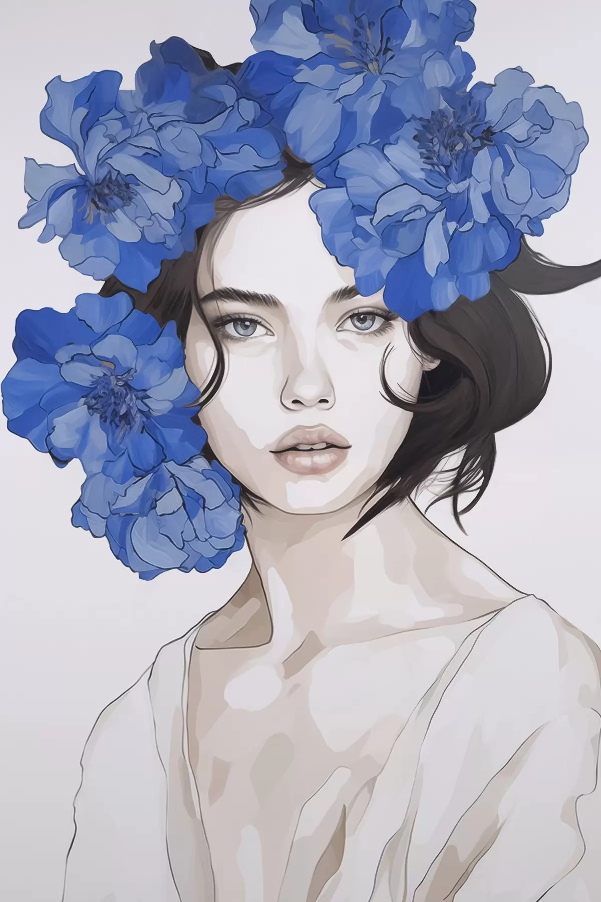 Picture Portrait of a girl with blue flowers Nr s45756