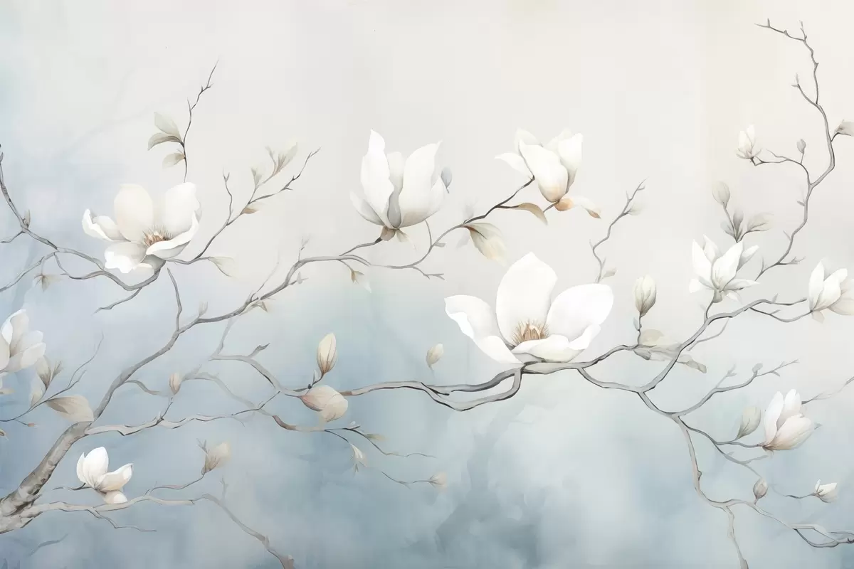 Picture Magnolia branches with white flowers on a delicate background Nr s45806
