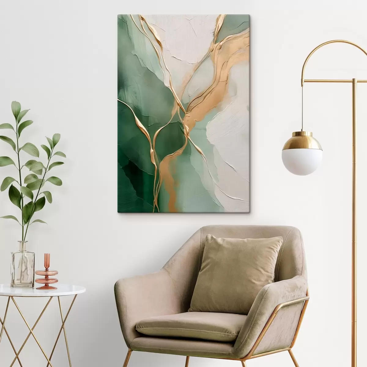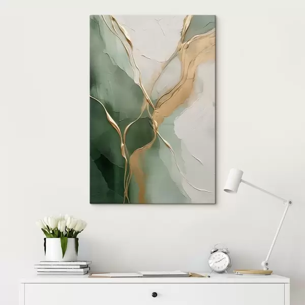 Picture Emerald-cream abstraction with yellow rivulets Nr s45887