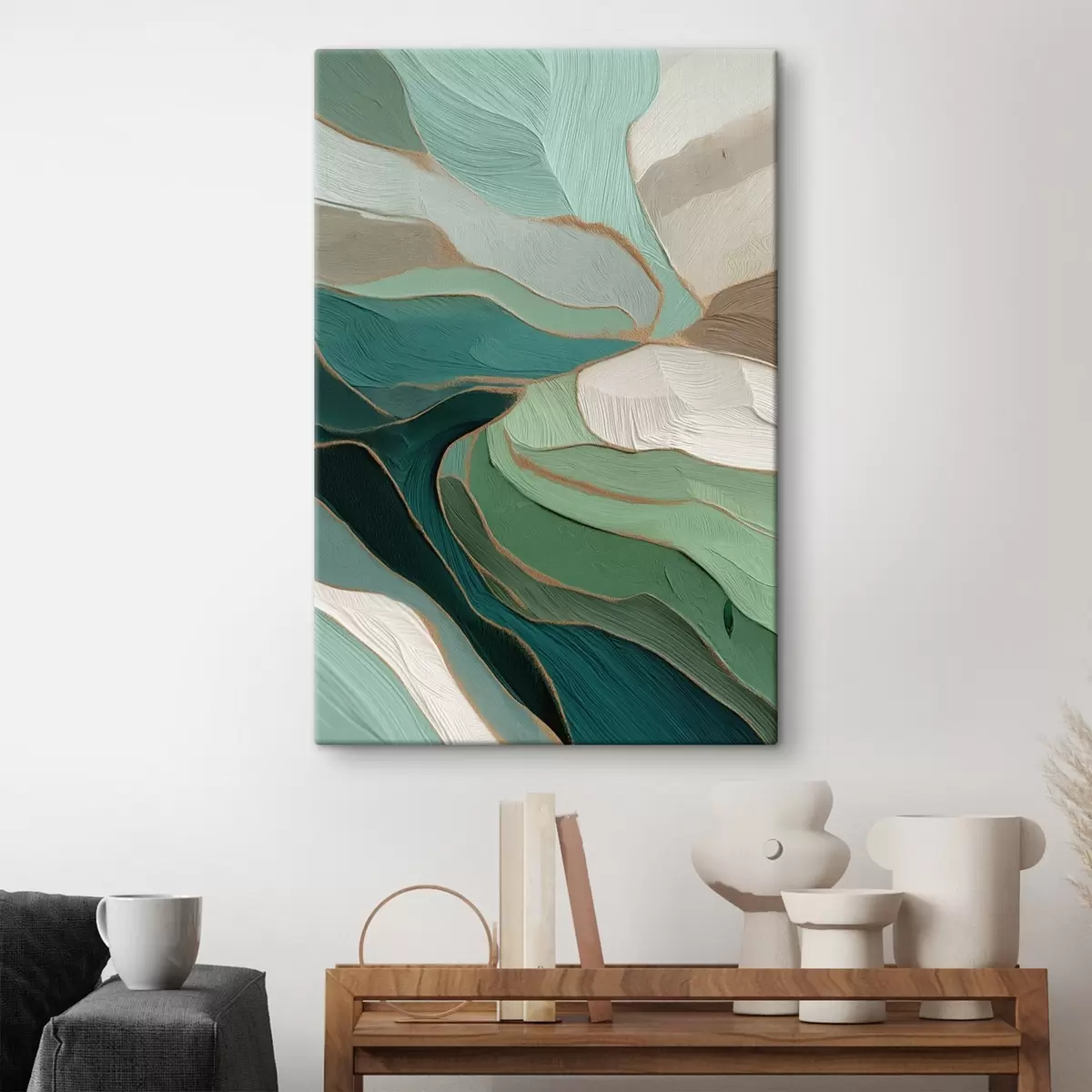Picture Sage-green abstraction with a yellow outline Nr s45901