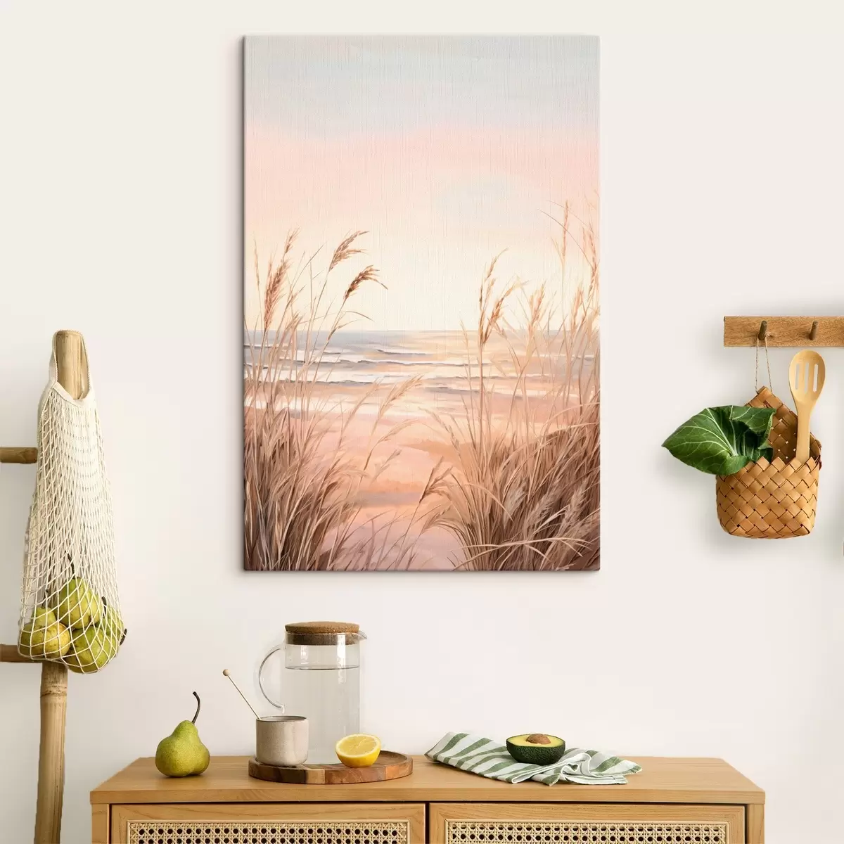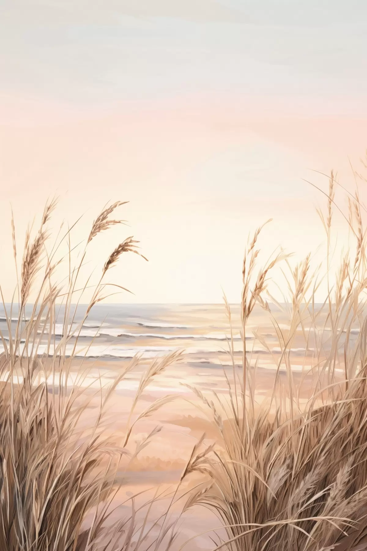 Picture Pampas grass with pastel orange color palette, light pink sky, a tranquil landscape Nr s45935
