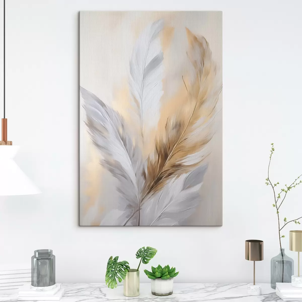 Picture Feathers with orange accents, textured minimalist composition, modern art Nr s45945