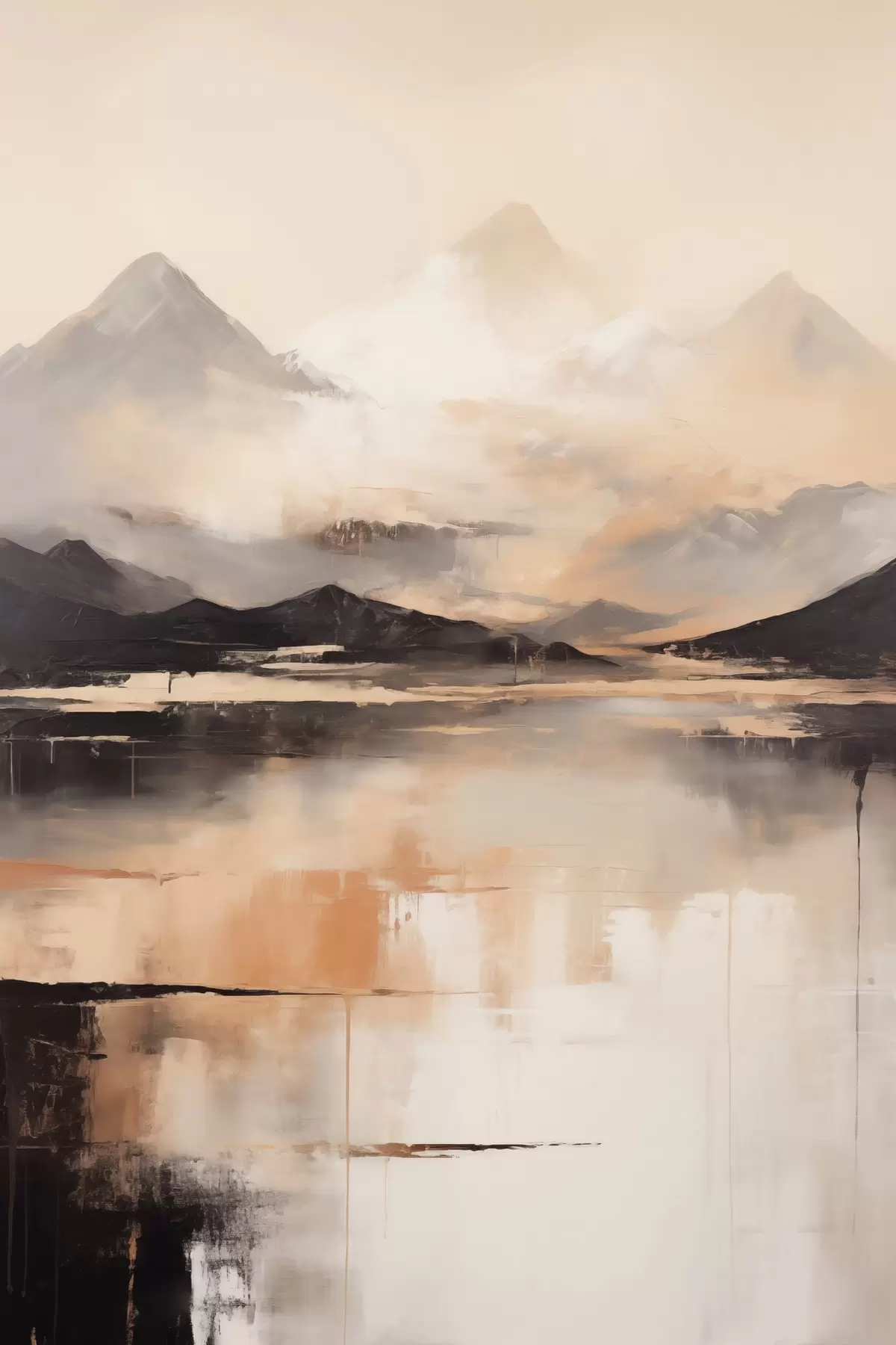 wall murals A landscape textured painting imitation of mountains and a lake s45950