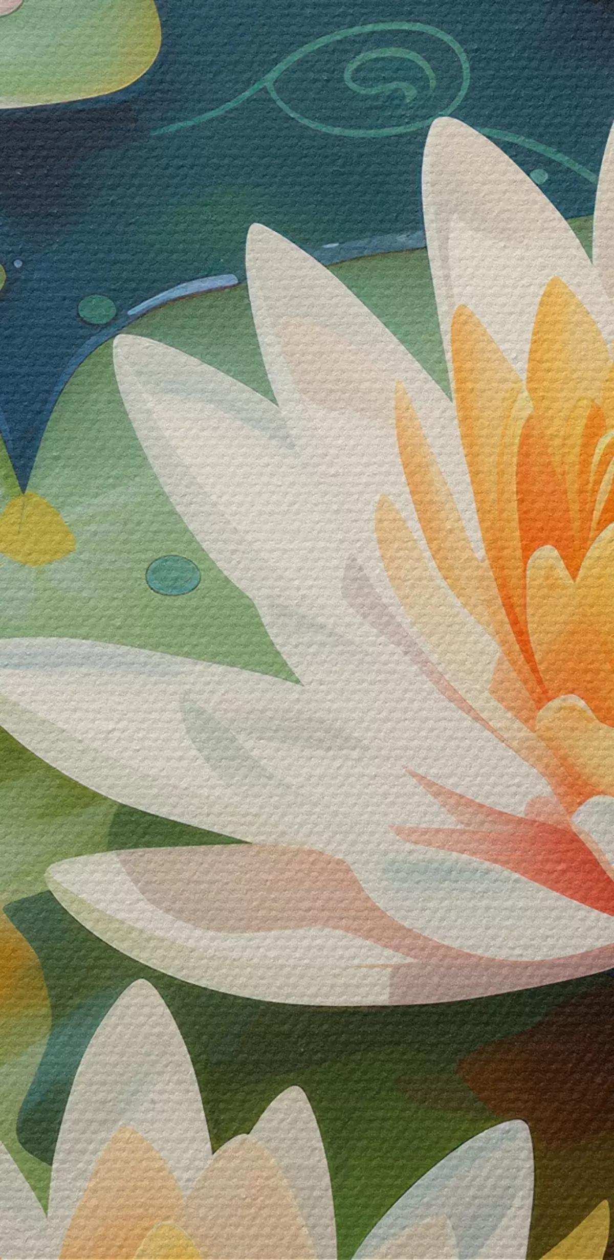Three types of material are available for ordering: Economic Canvas - a dense and durable material for digital printing, identical to painter's canvas, waterproof surface, realistic reproduction of details, medium-grain material. Premium Canvas - the texture resembles a painter's canvas (interwoven small threads). Soft, detailed reproduction of the image on a matte surface. Eco-Premium - high quality 100% cotton fabric. Thanks to natural cotton fibers, the material is durable and wear-resistant. Excellent color reproduction and detail.