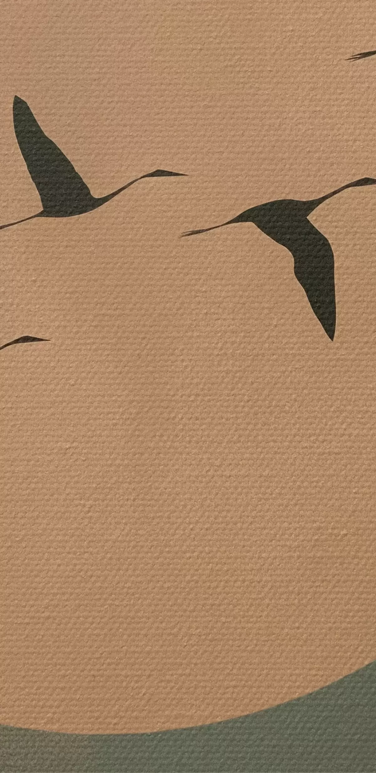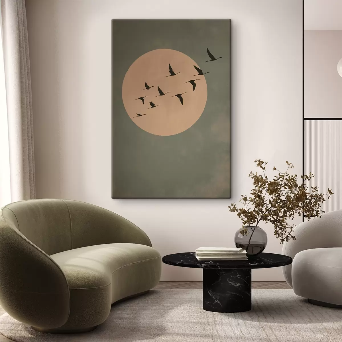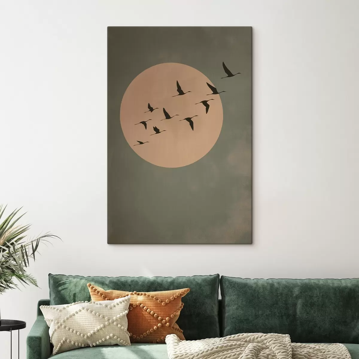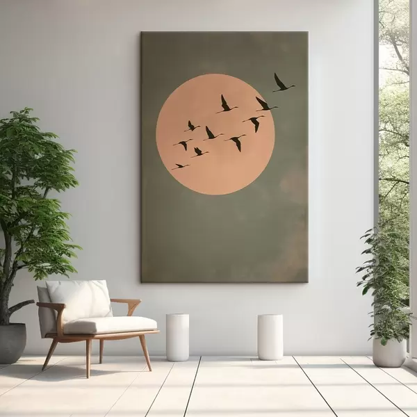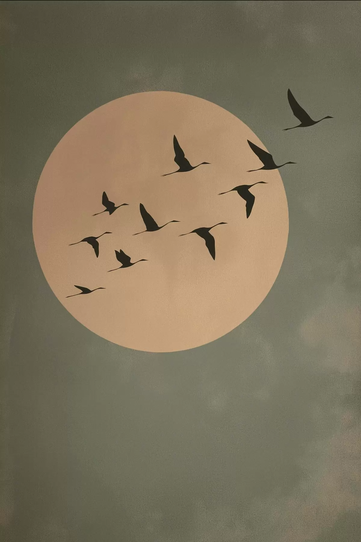 Picture A flock of birds flying against a large warm moon Nr s46162