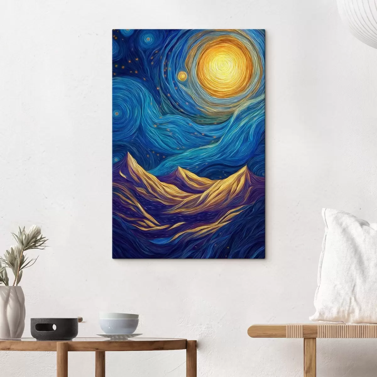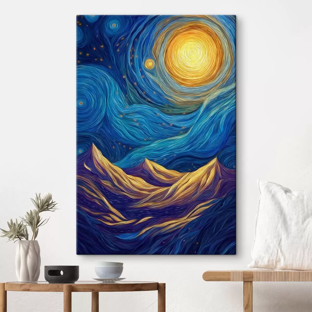 The painting can be hung immediately after receiving it. The painting will be stretched on 2 cm wide wooden stretcher.