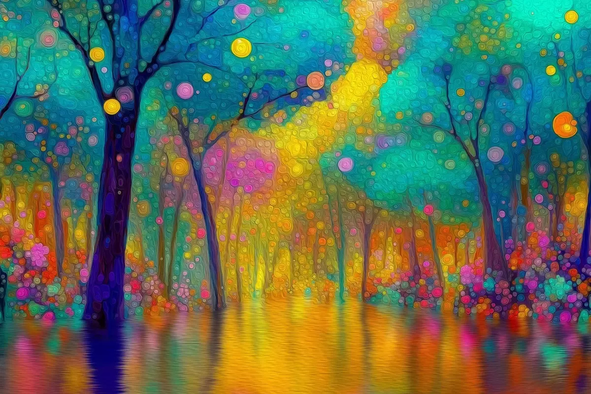 Picture Vivid fantasy forest with reflections in water Nr s46171