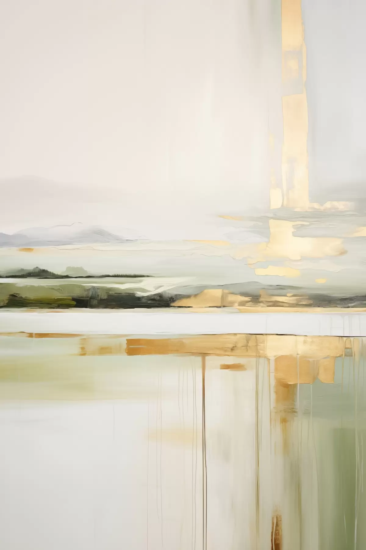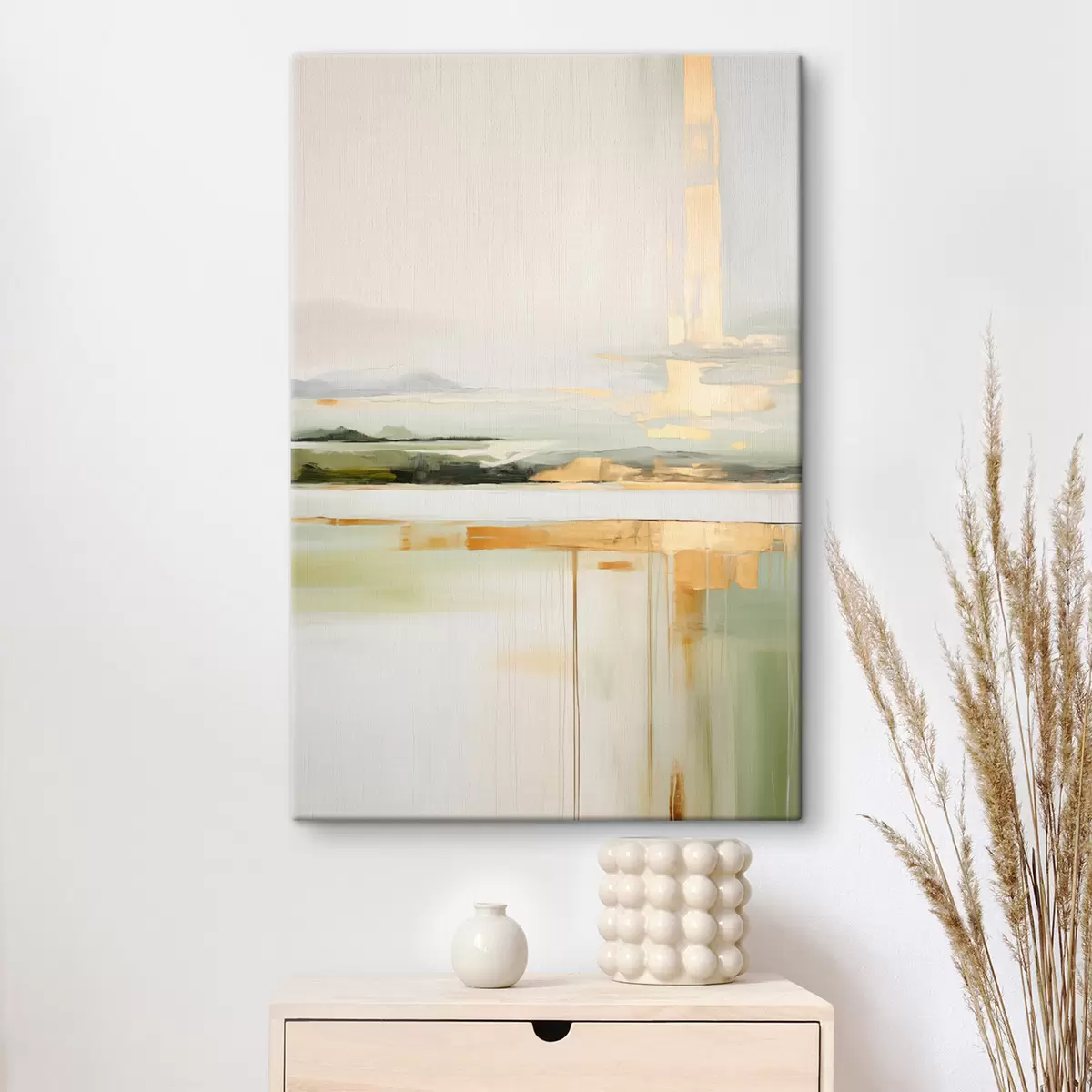 Picture Abstract landscape with yellow accents, a minimalist composition of land, water and sky, with muted colors Nr s46268