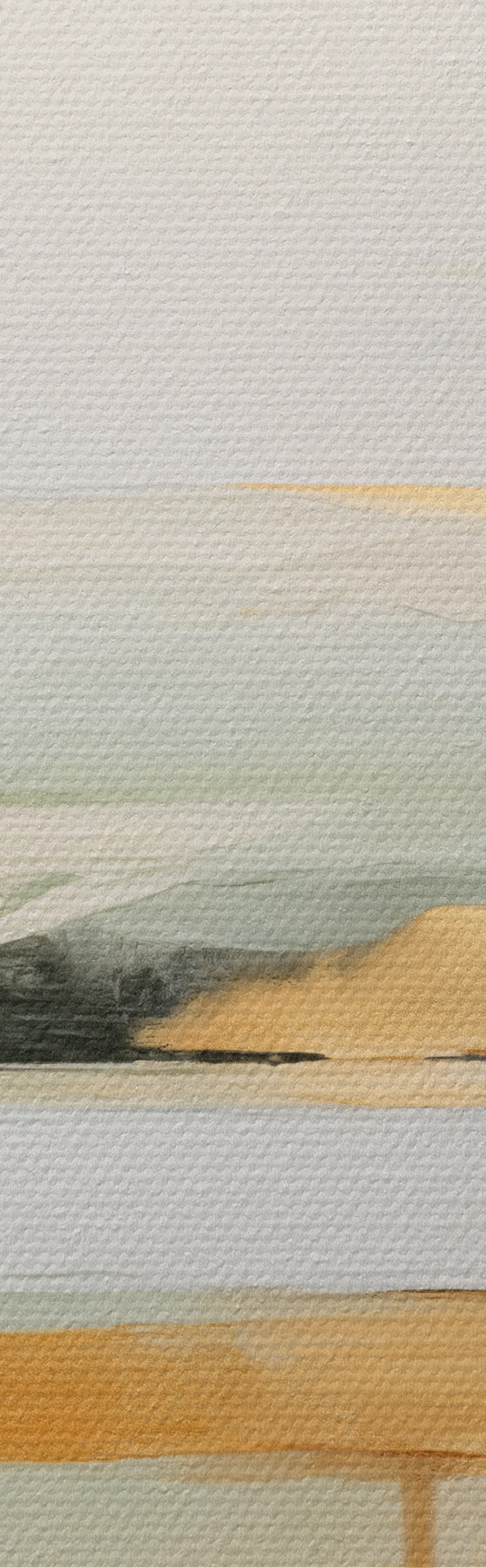 wall murals Abstract landscape with yellow accents, a minimalist composition of land, water and sky, with muted colors s46268