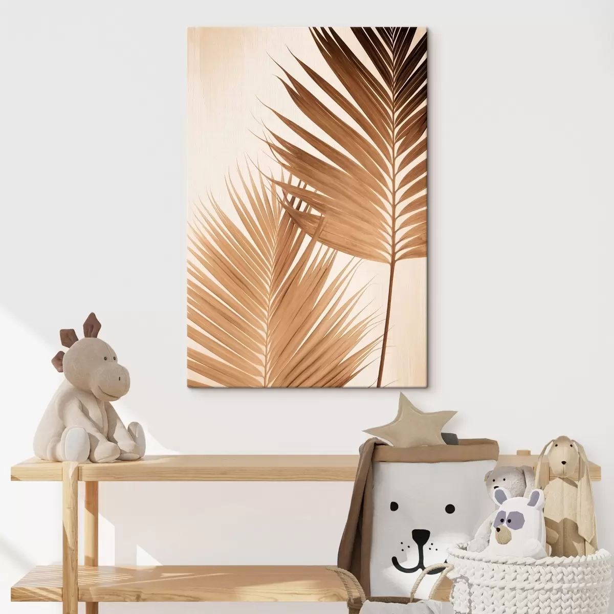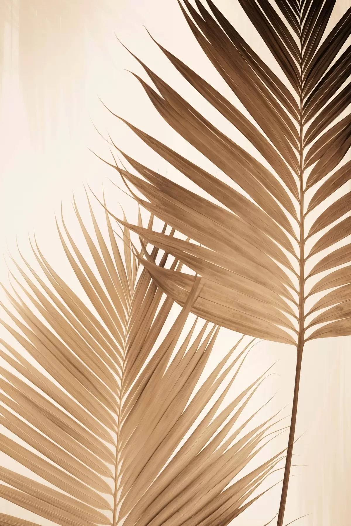 wall murals Palm leaves in brown tones, neutral background, minimalist style, natural lighting, tropical vibe s46274