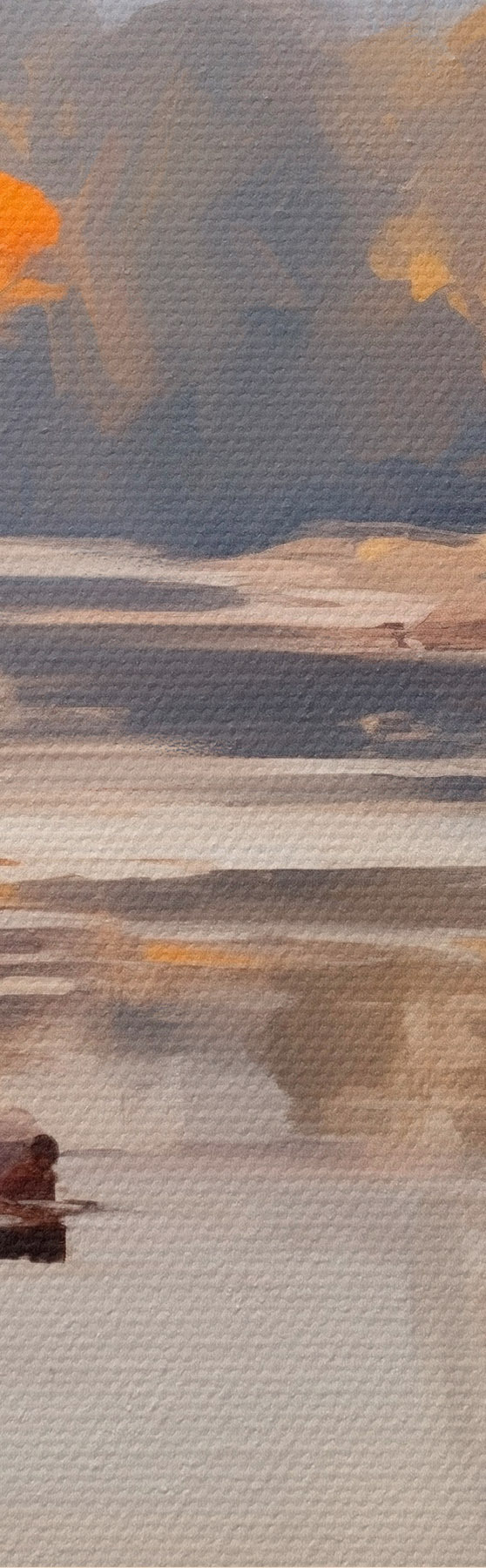 The painting can be hung immediately after receiving it. The painting will be stretched on 2 cm wide wooden stretcher.