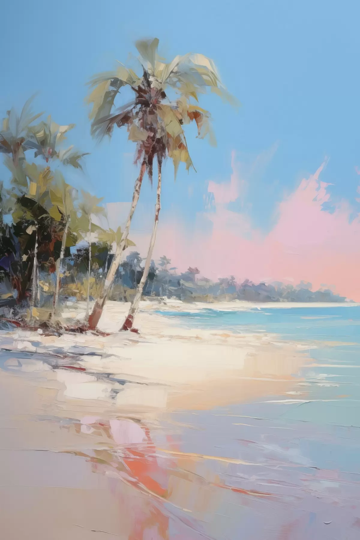 wall murals Abstract tropical beach with white sand and palm trees, blue sky with white clouds s46285