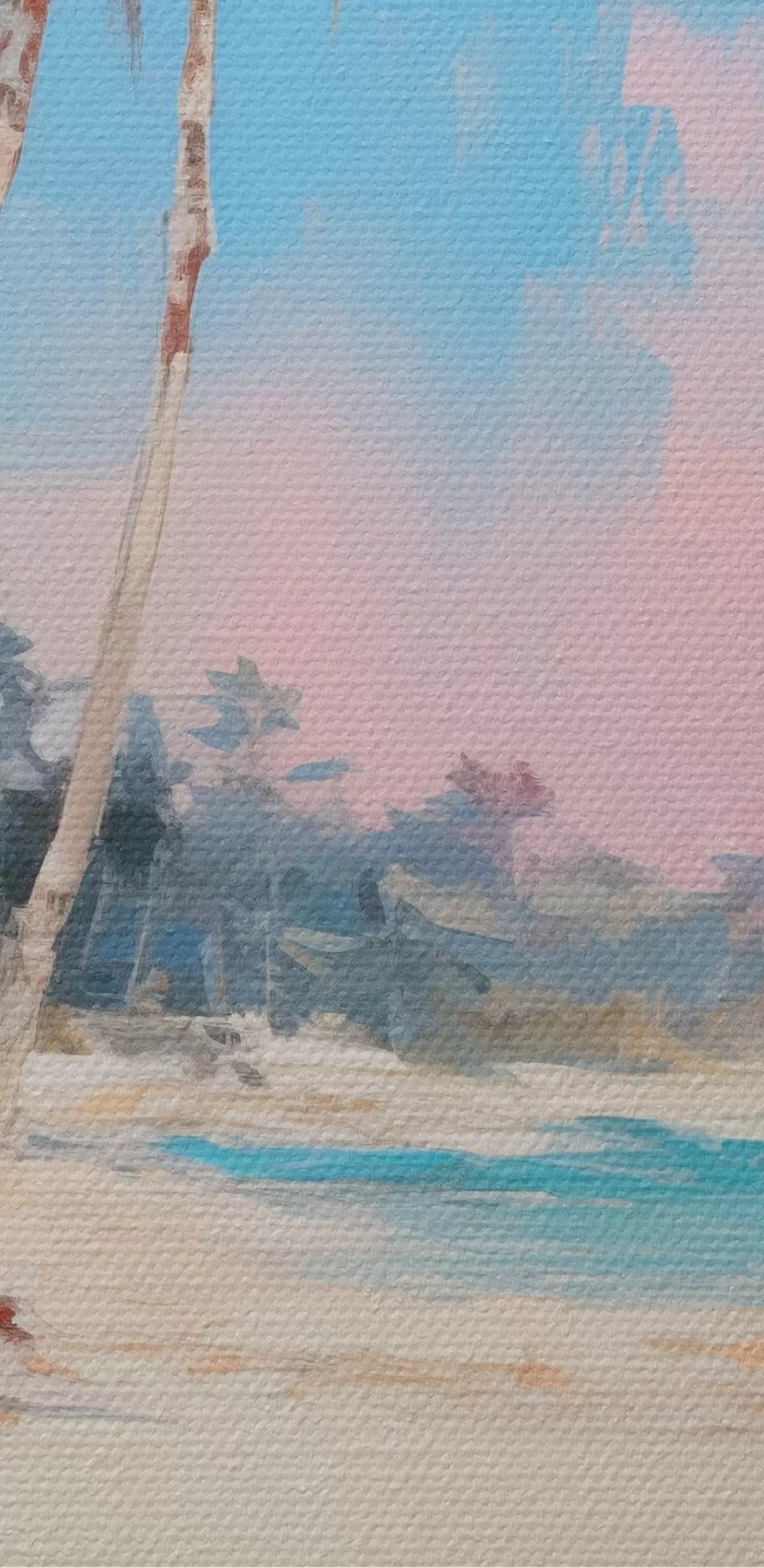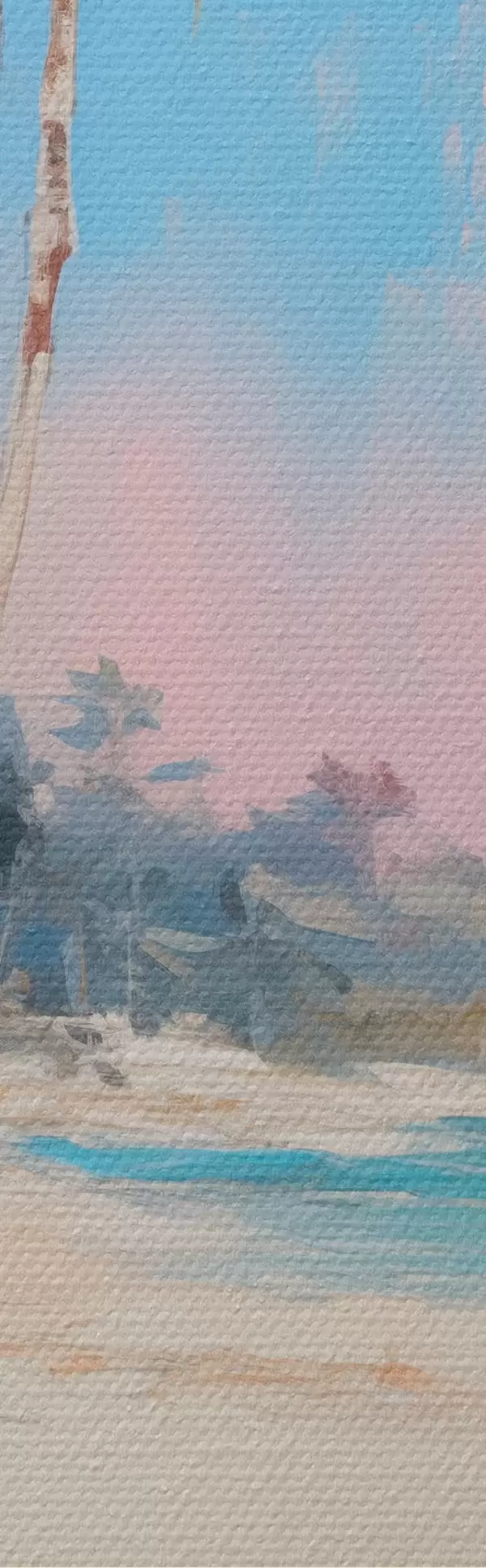 The painting can be hung immediately after receiving it. The painting will be stretched on 2 cm wide wooden stretcher.