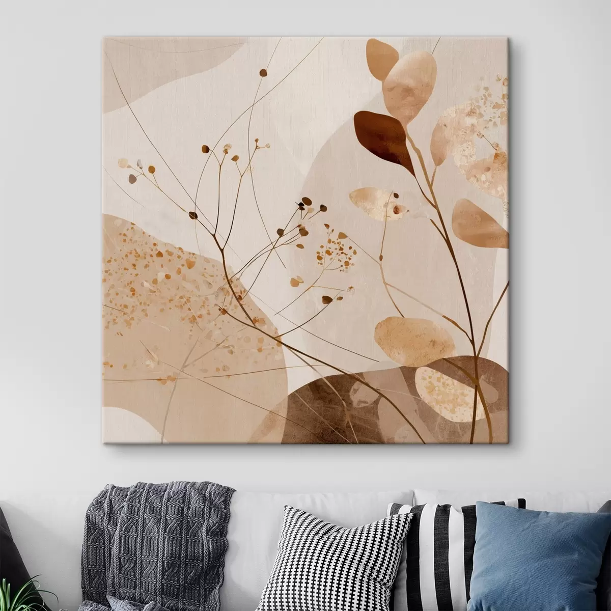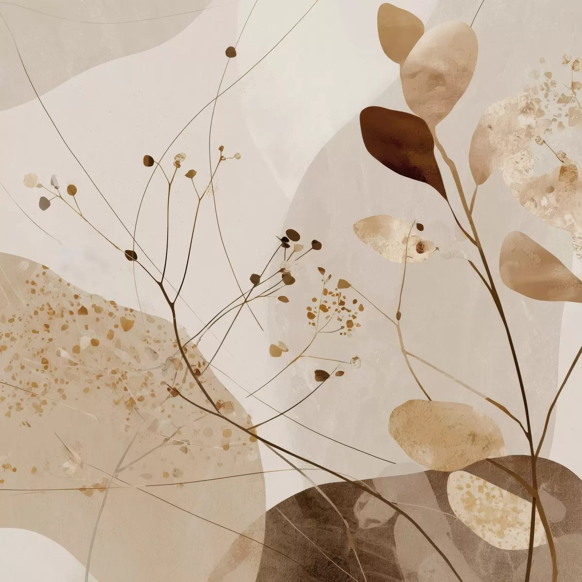 Picture Abstract shapes and plant motifs in beige tones Nr s46309
