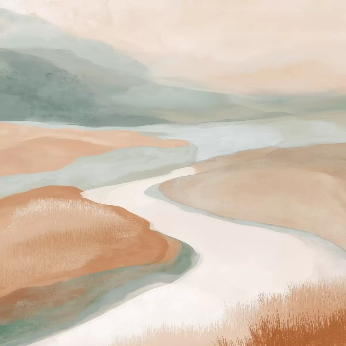 wall murals Abstract landscape with a river in orange and green s46316