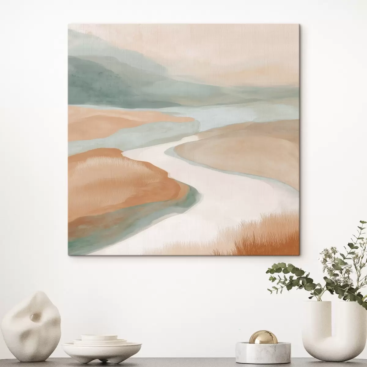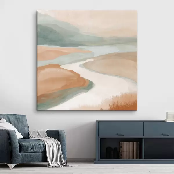 Picture Abstract landscape with a river in orange and green Nr s46316