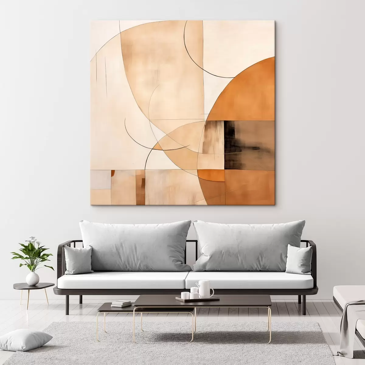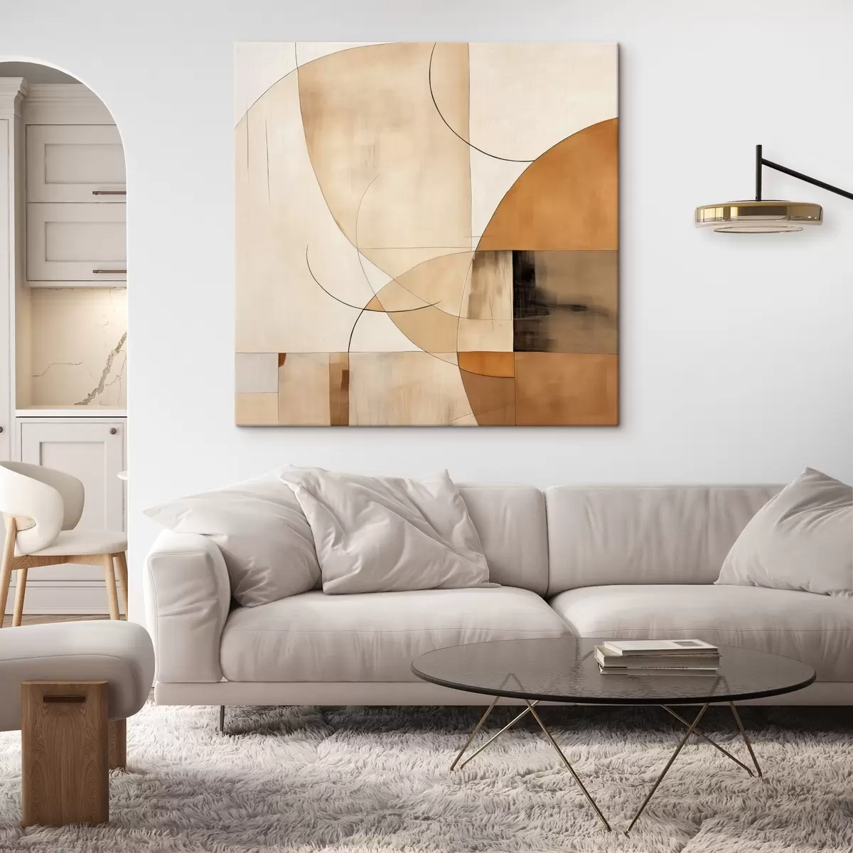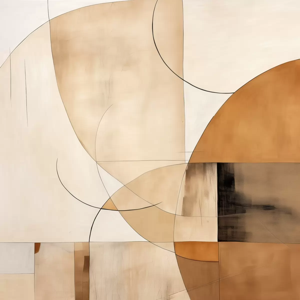 Picture Geometric abstraction with curved lines and beige tones Nr s46320