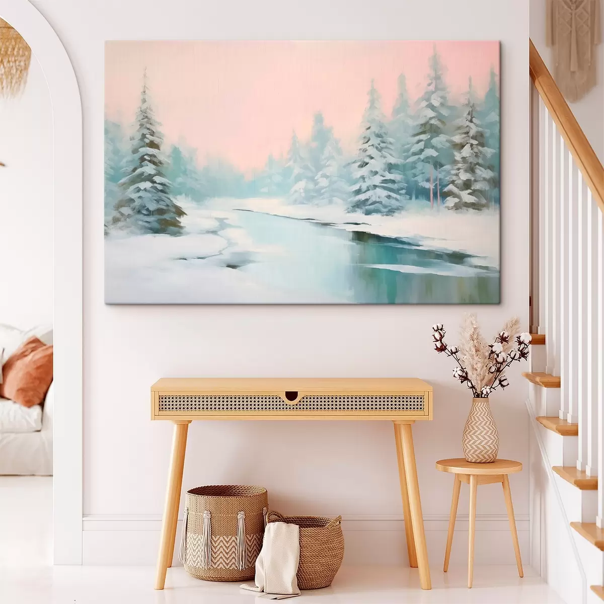 The painting can be hung immediately after receiving it. The painting will be stretched on 2 cm wide wooden stretcher.