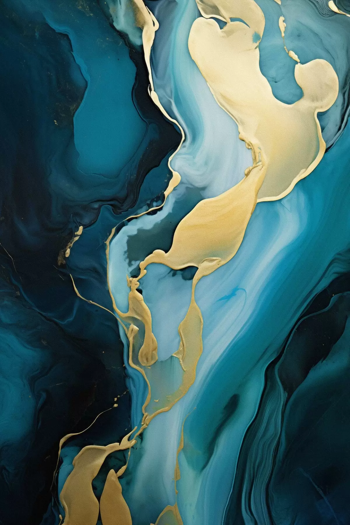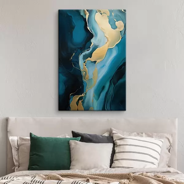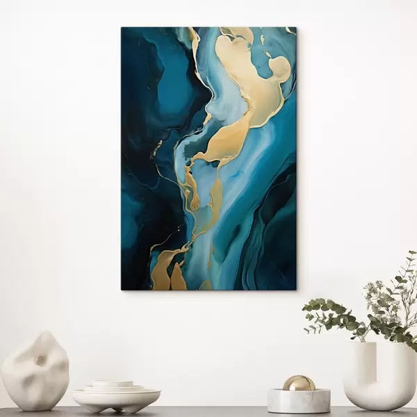 Picture Teal-blue abstract with a stream of ochre Nr s46530