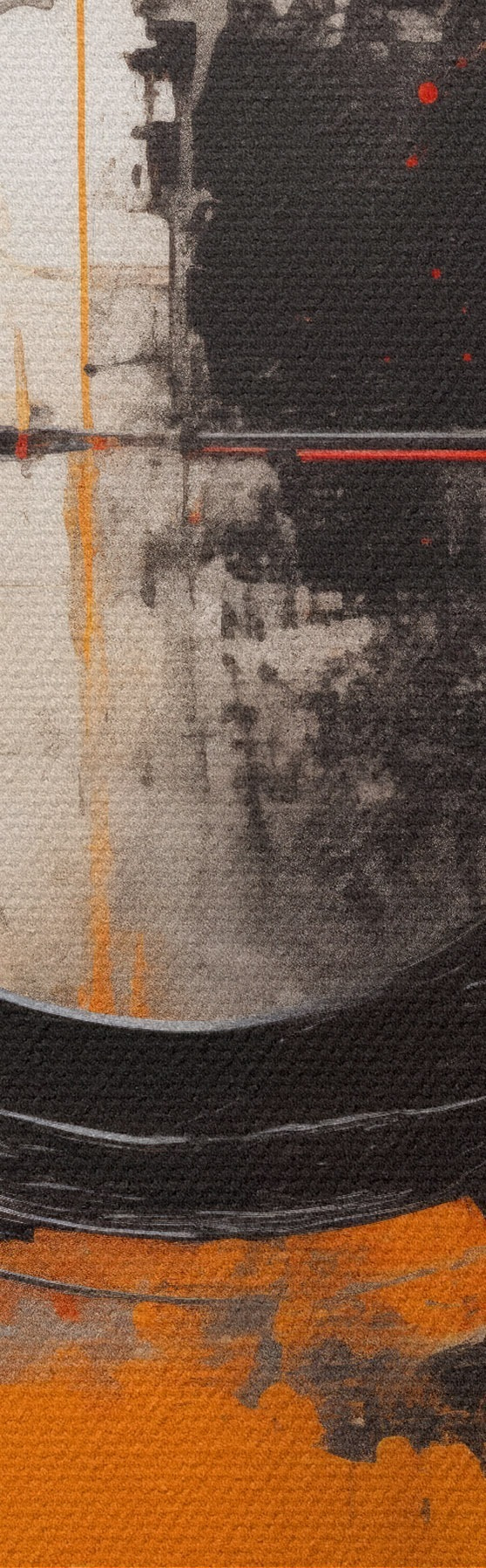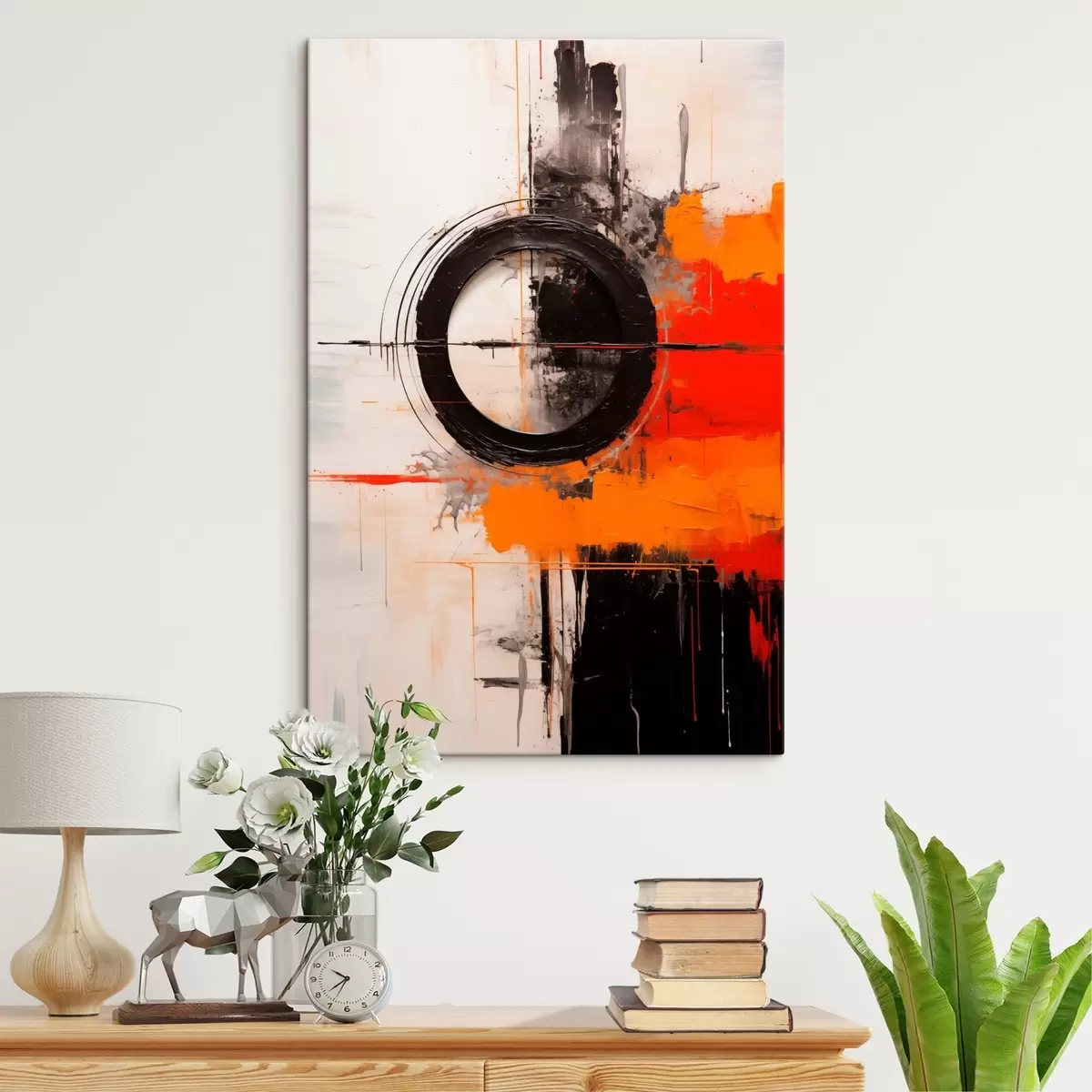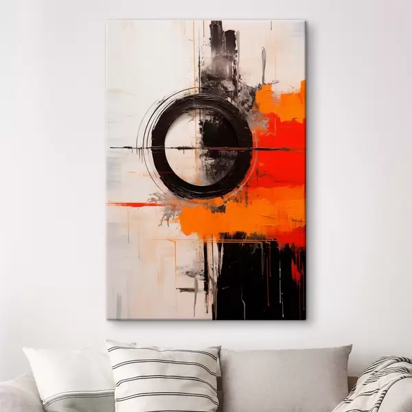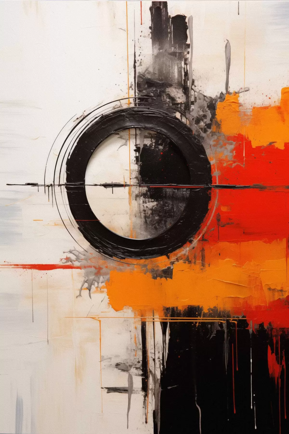 Picture Black circle on white, orange strokes and splashes Nr s46549