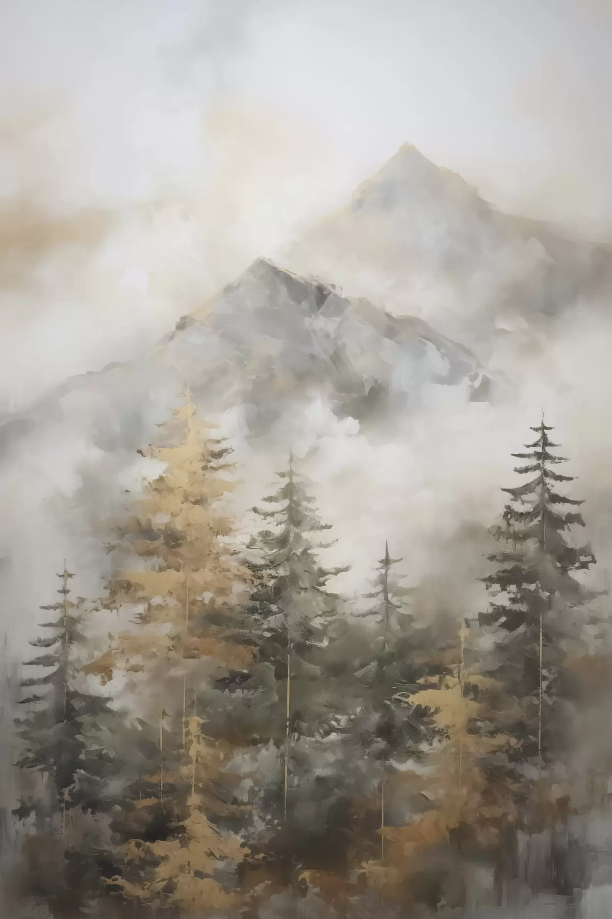 wall murals Forest against the backdrop of mountains imitation of painting s46670