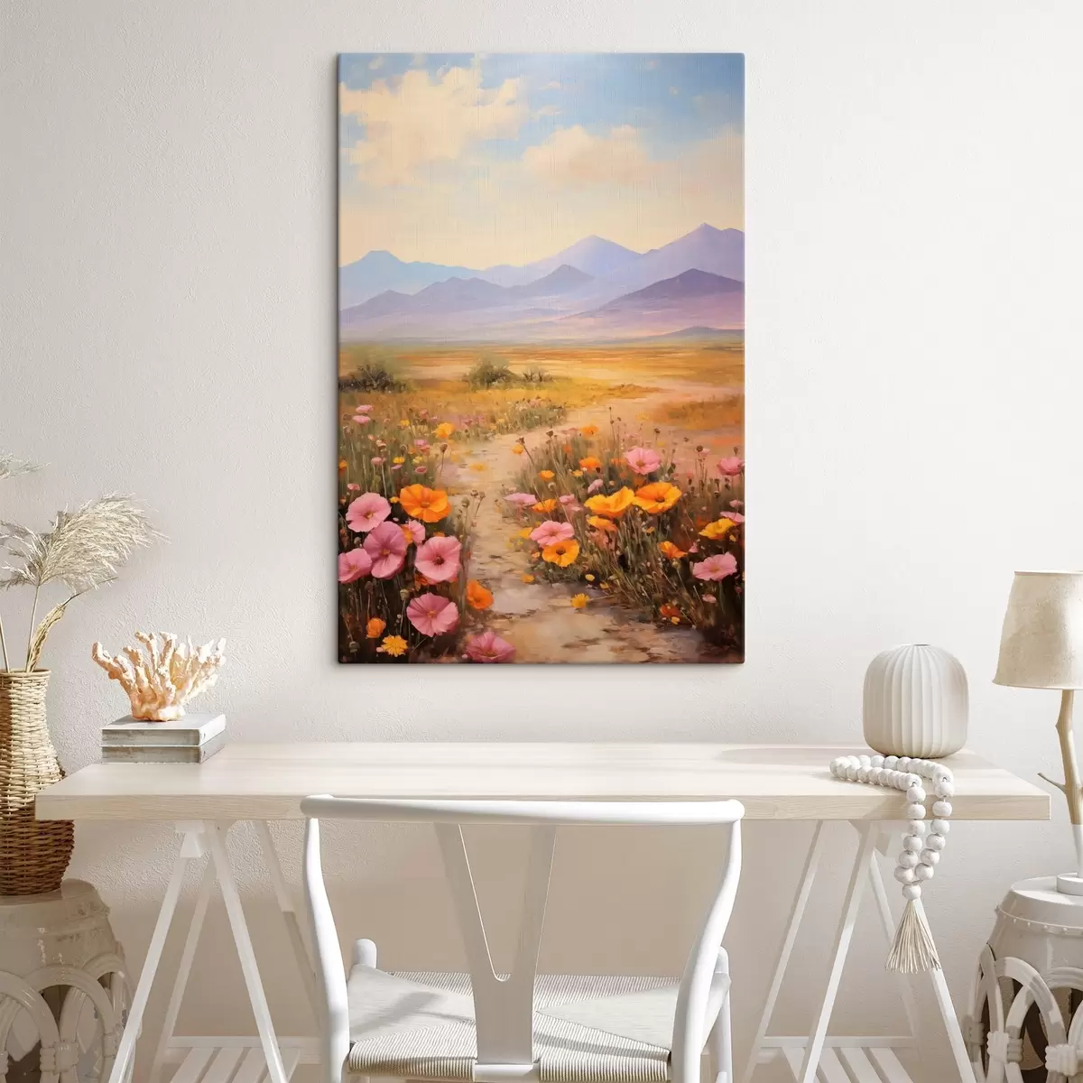 wall murals Landscape, a field of colorful flowers with mountains in the background, soft and pastel colors s46686