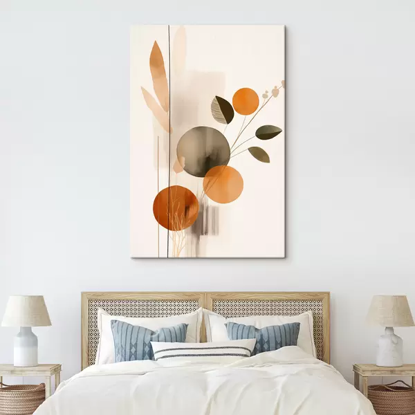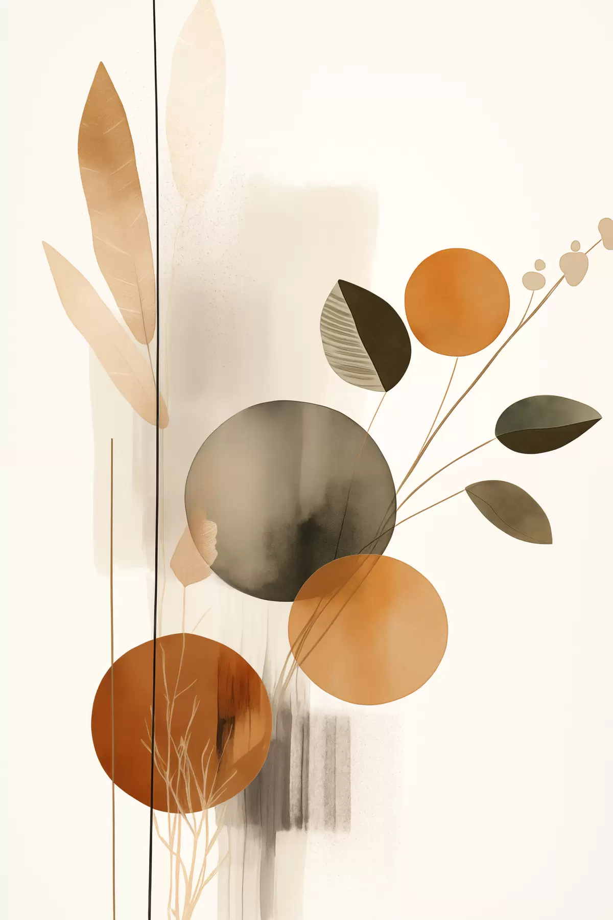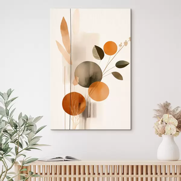Picture Abstract painting imitation with orange and gray circles, leaves and branches, modern style, watercolor effect Nr s46697